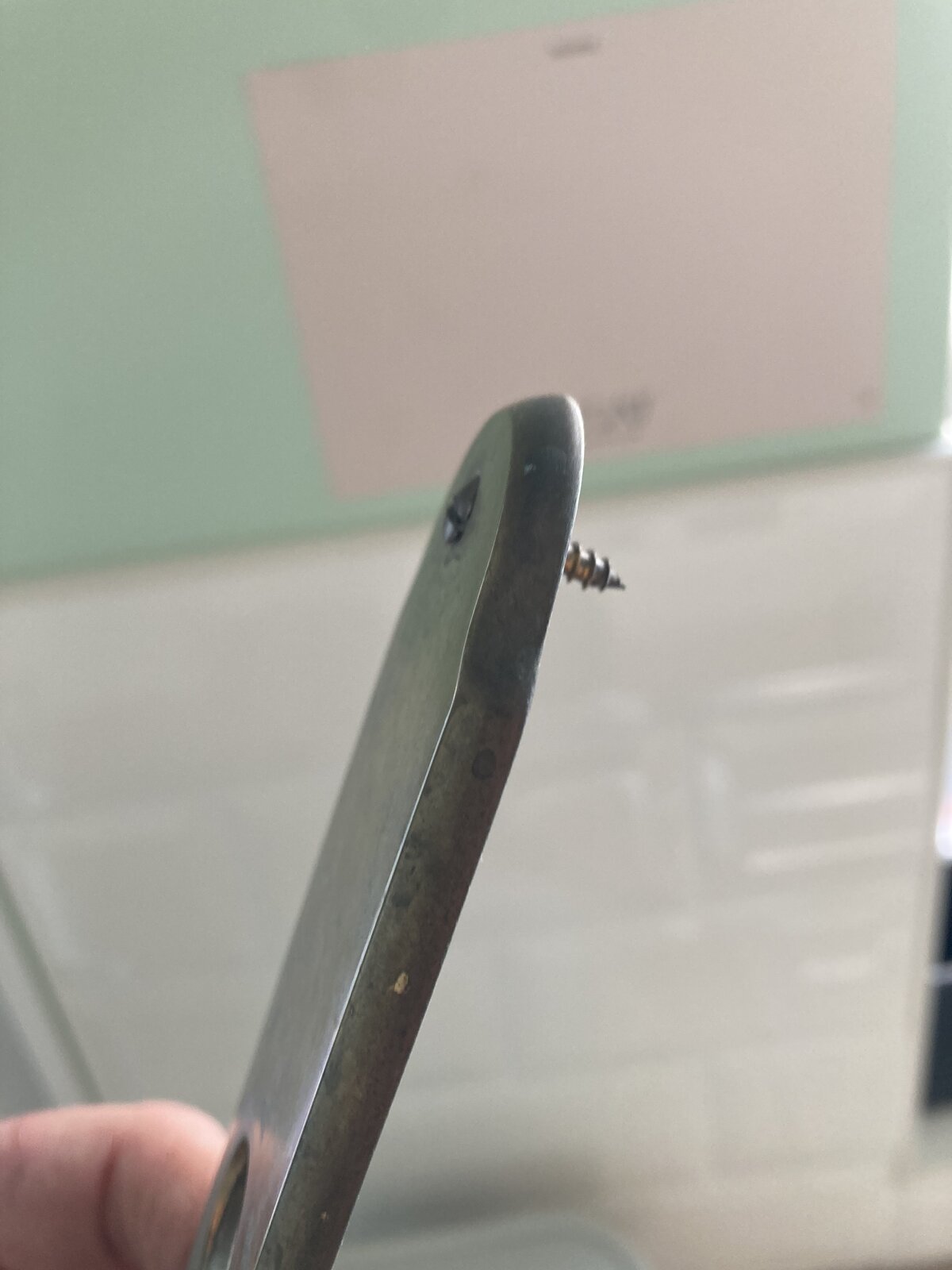 The position of everything matches modern day standard handle BUT when I removed the handle and started to investigate drilling through the door to allow the handles to bolt together I’ve hit steel. I can see much as I don’t want to open up the screw holes which would mean I couldn’t put the old handles back if I fail.