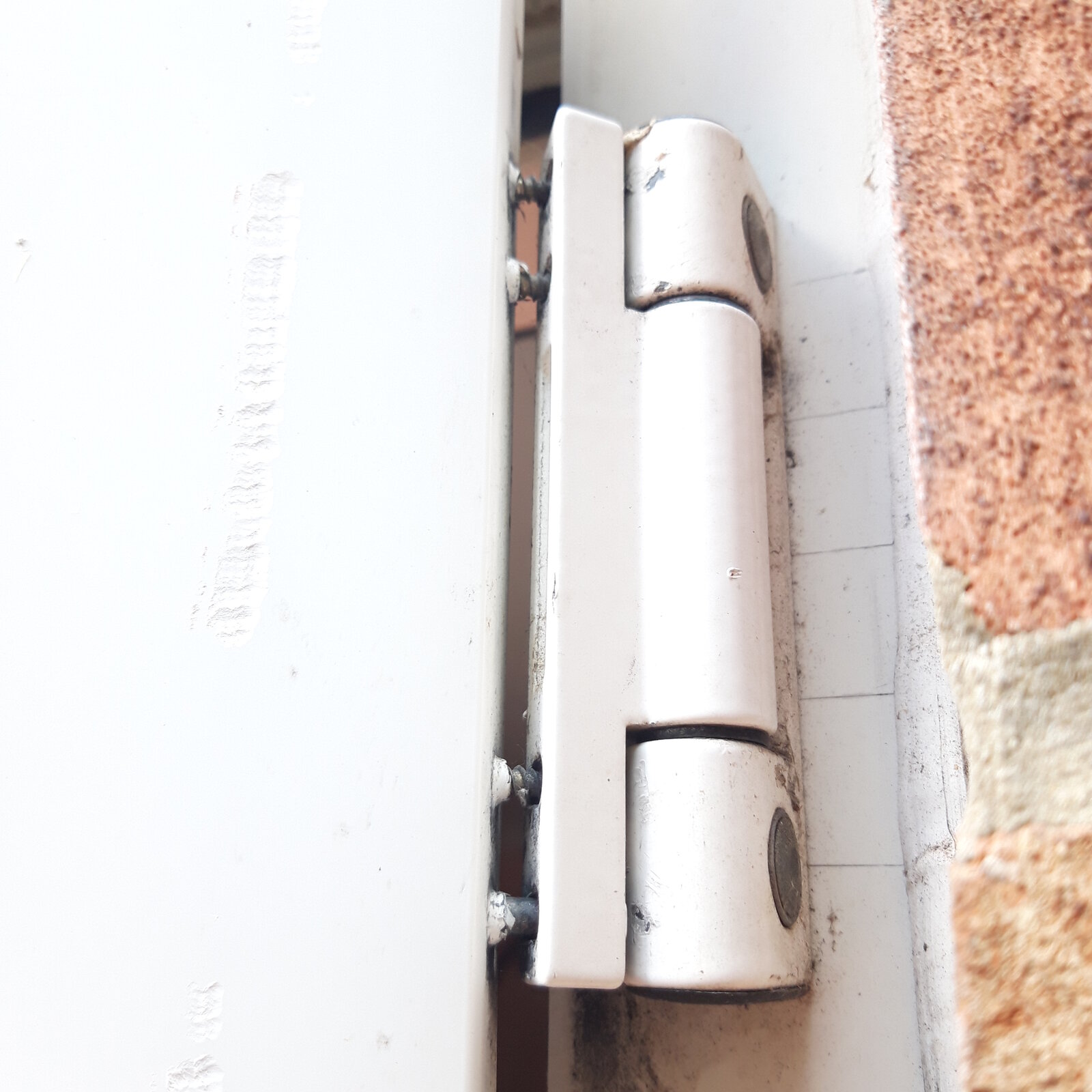 My partner has been struggling to close her patio doors and it is because the door has knocked against the brickwork and it has worked loose the screws that go from the top hinge into the actual door ..could anyone please advise how best to repair..i cannot get a screwdriver onto the screw heads so i think its a door off job but wanted to know how best to do it.