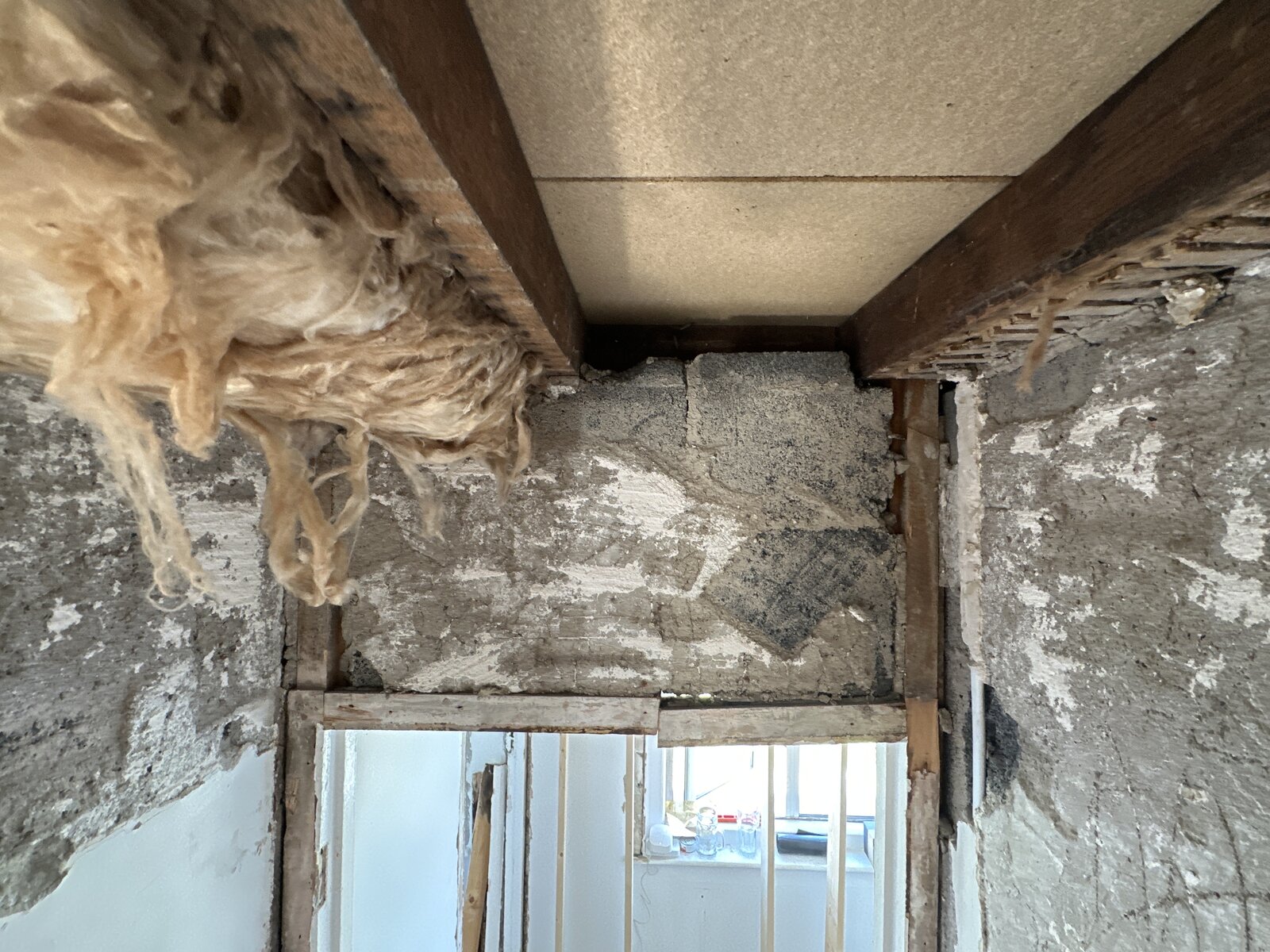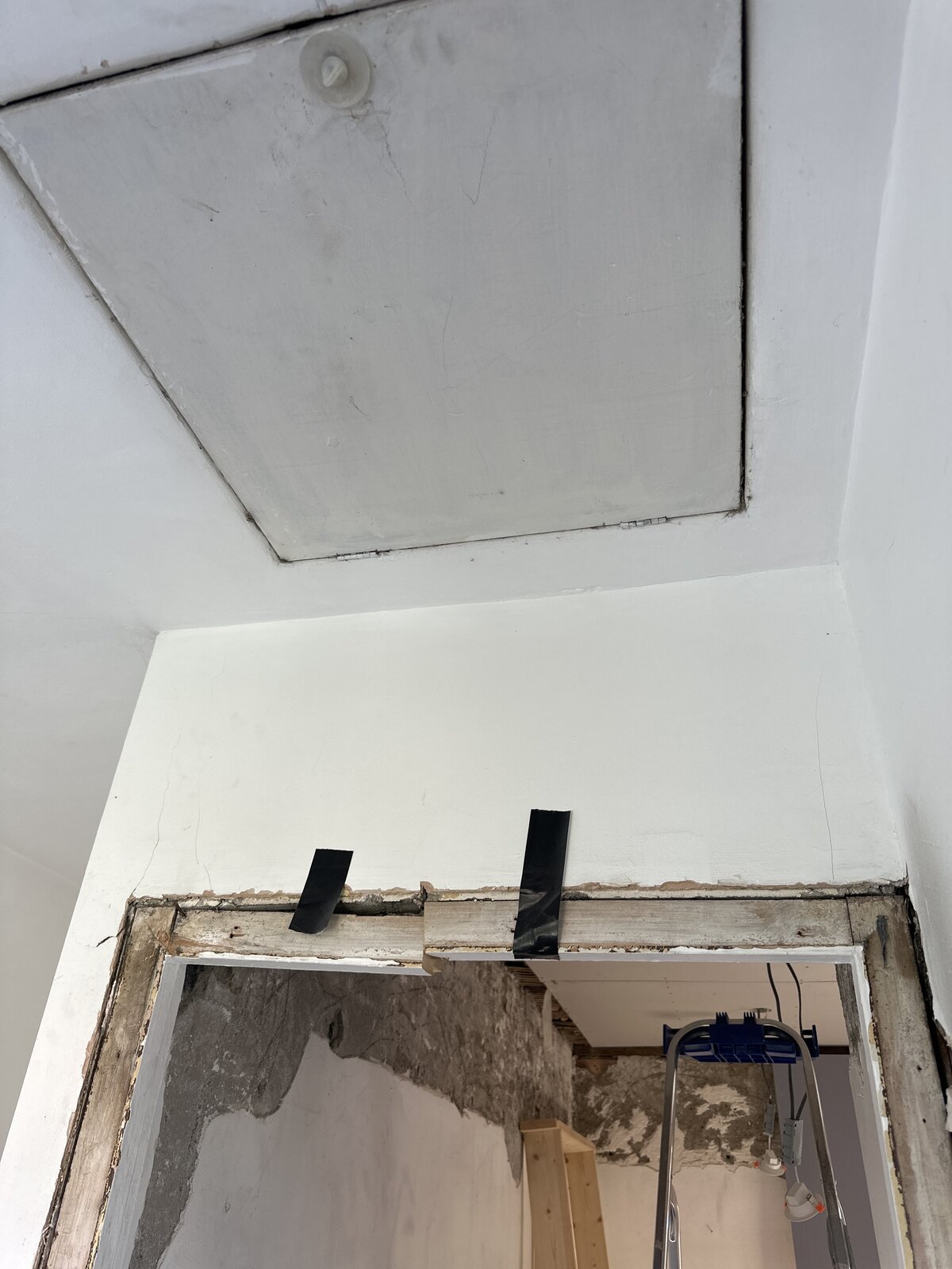 Can someone tell me how I can tell if this doorframe is load bearing? 1. Can I remove the blocks and just plasterboard (does the hoist above need the blocks?) and also, can I also remove the header wood?