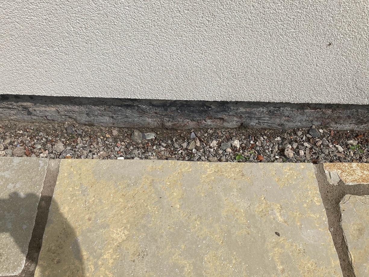 ...but I've got a similar issue with a bit of a difference. My patio is raised up to the DPC but has been cut away to prevent surface water ingress. The builder has now gone and I've been left with the task of painting the bricks (for cosmetics and function) before then filling the channel with stones. I've attached a couple of images to illustrate what I'm up against. I was told to use something like Black Jack DPC paint and 10mm gravel - does that sound reasonable or does anyone have a better idea?