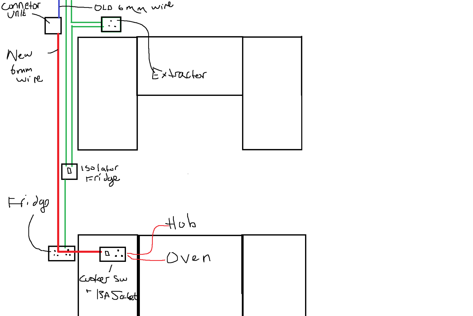 I am renovating my kitchen and have run into a problem. I need to extend a 6 mm cooker cable on a 40A MCB. The cable can’t reach the cooker switch, so I’m planning to use a 45A cooker connection unit as an extension point ~1.5 m before the isolator. Is this compliant with UK wiring regs?
