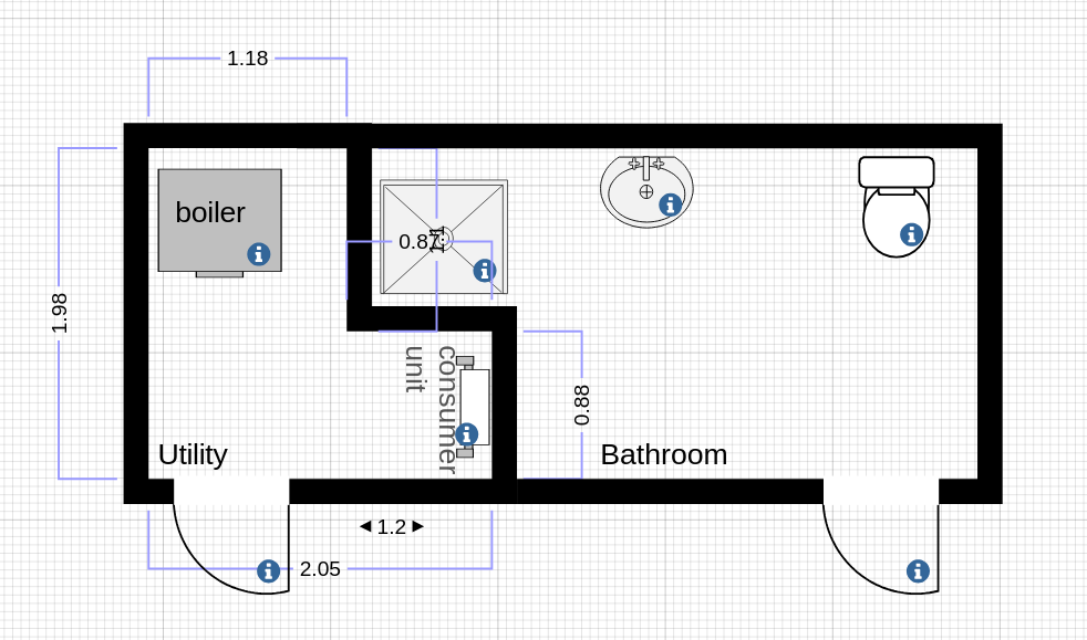 I have a small 1.8m X 2m downstairs room which currently houses the consumer units, incoming gas main, boiler, alarm system, and incoming water main, and drainage pipes for the downstairs bathroom which is adjacent.