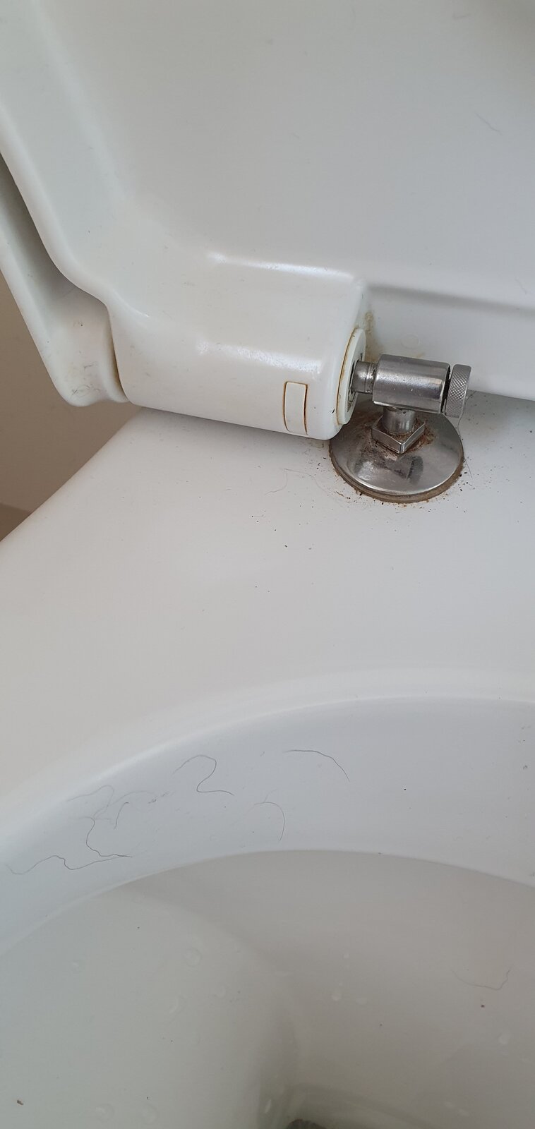 We have a broken toilet seat and the fixing is shown in the photo. I assume that the knurled bit on the end is what releases the seat but I can't work out how. Any ideas?