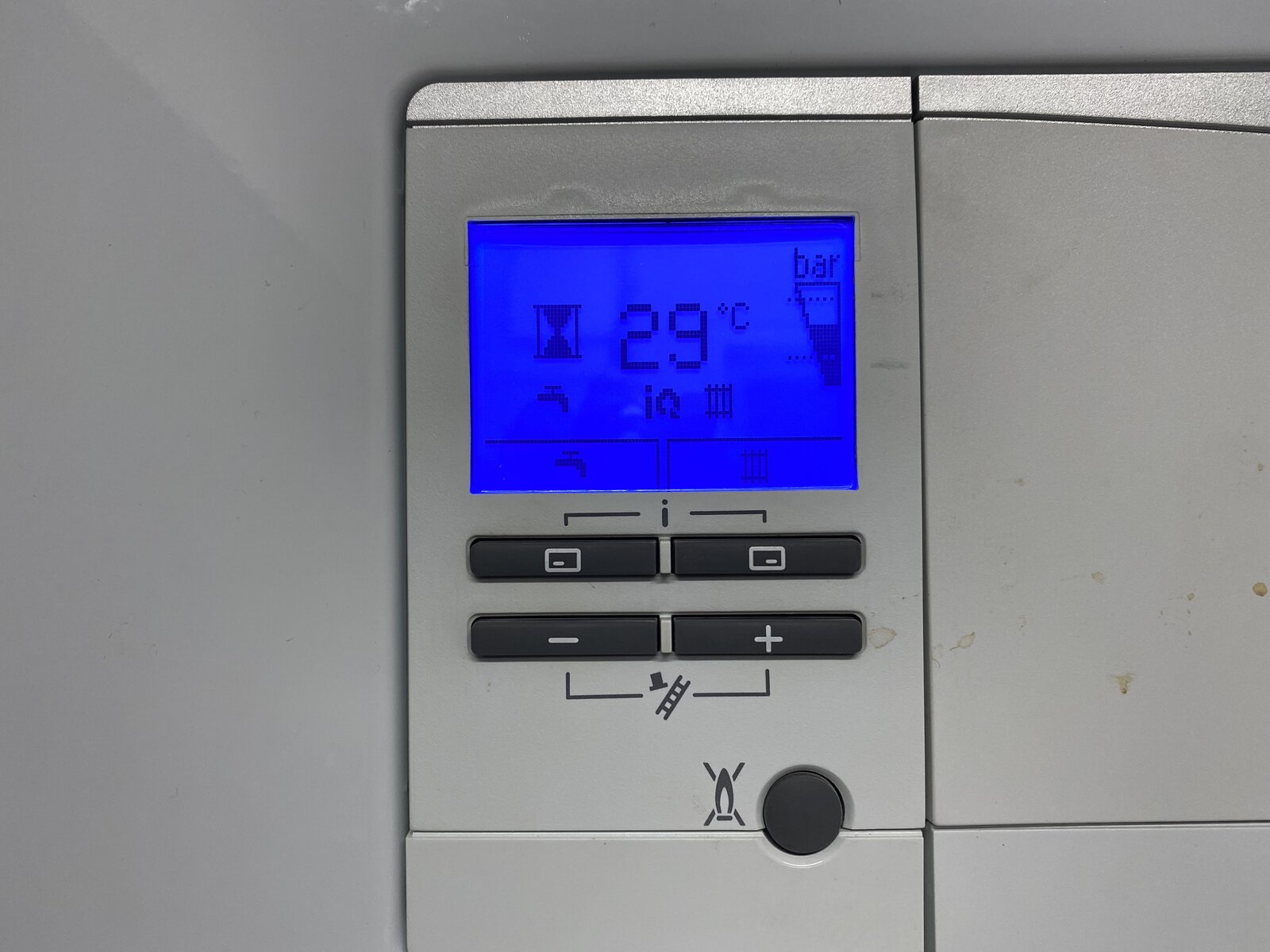 I’d have probably guessed this , as your display (usually the flow temp) is showing 29 on first photo and 32 on second. Chimney sweep is max rate and not for very long. Could be your vsmart playing up then, I don’t have experience on these, perhaps one of the Vaillant pro’s can help.
