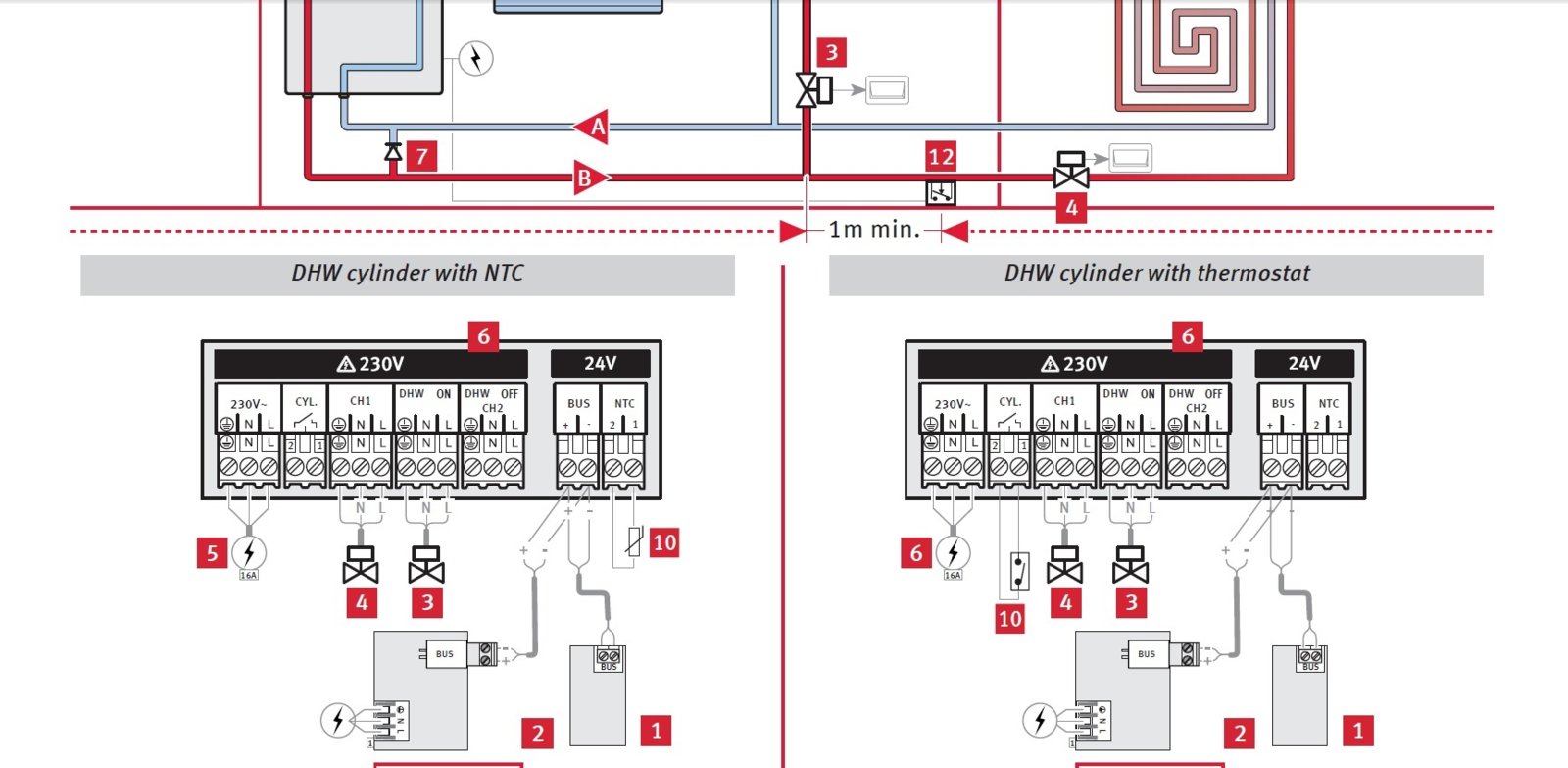 I have an eco tec 428 boiler running in sealed system with VR66 VRT350 wired and A VR10 NTC sensor, System runs well in central heating mode but i cannot call DHW VRT timer is set so that DHW is on, VRT350 shows hot water temp in installer menu and boiler off during DHW demand time and HEATING during CH time, i know that the VRT350 is good and ebus wiring is good (twisted pair screened cable) measuring volts across CH1 i see 230VAC in CH mode but i see nothing across DHW on, i have swapped out the VR66 without any success hot water tank is Vaillant unistore VR10 in dry pocket two 2 port valves