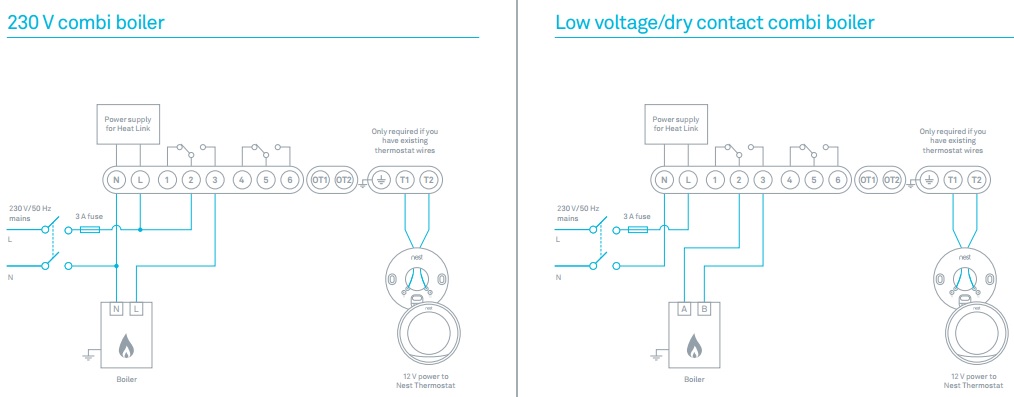 With the Nest do I need to use the 230V combi boiler diagram and connect to 3 and 4 (shunt removed)?
