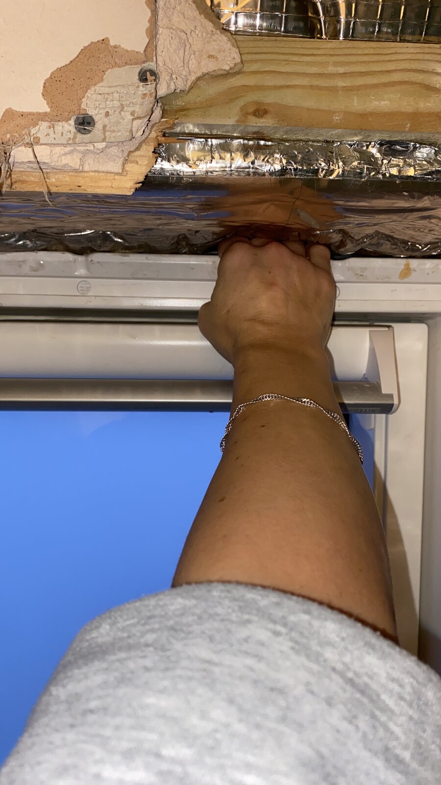 We had a reputable roofing company supply the roof materials along with the velux’s, we didn’t have a project manager as such we purely relied on each trades professionalism and expertise for each part of the job. We did our own insulation with guidance from Actis themselves, they also came out to check all the insulation was installed correctly, also this is only happening on one side of our house the other side is absolutely fine, which leads us to think that it not the insulation causing the problem. I’ve uploaded a photo of me sticking my hand in the area where we have ingress of water/ condensation also I can feel a metal rim around the edge of the velux surround where it sits inside the rafters, the metal is drenched.