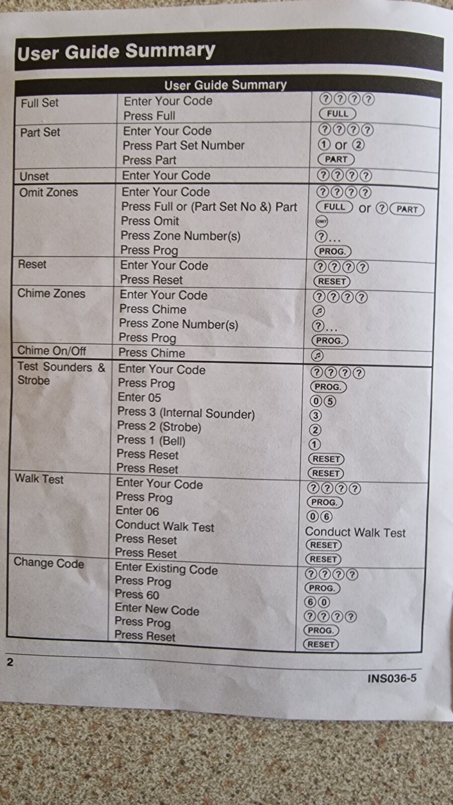 Tried to disable zones 7 & 8 but dont think it worked and also not sure what the original code would have been "0000"?