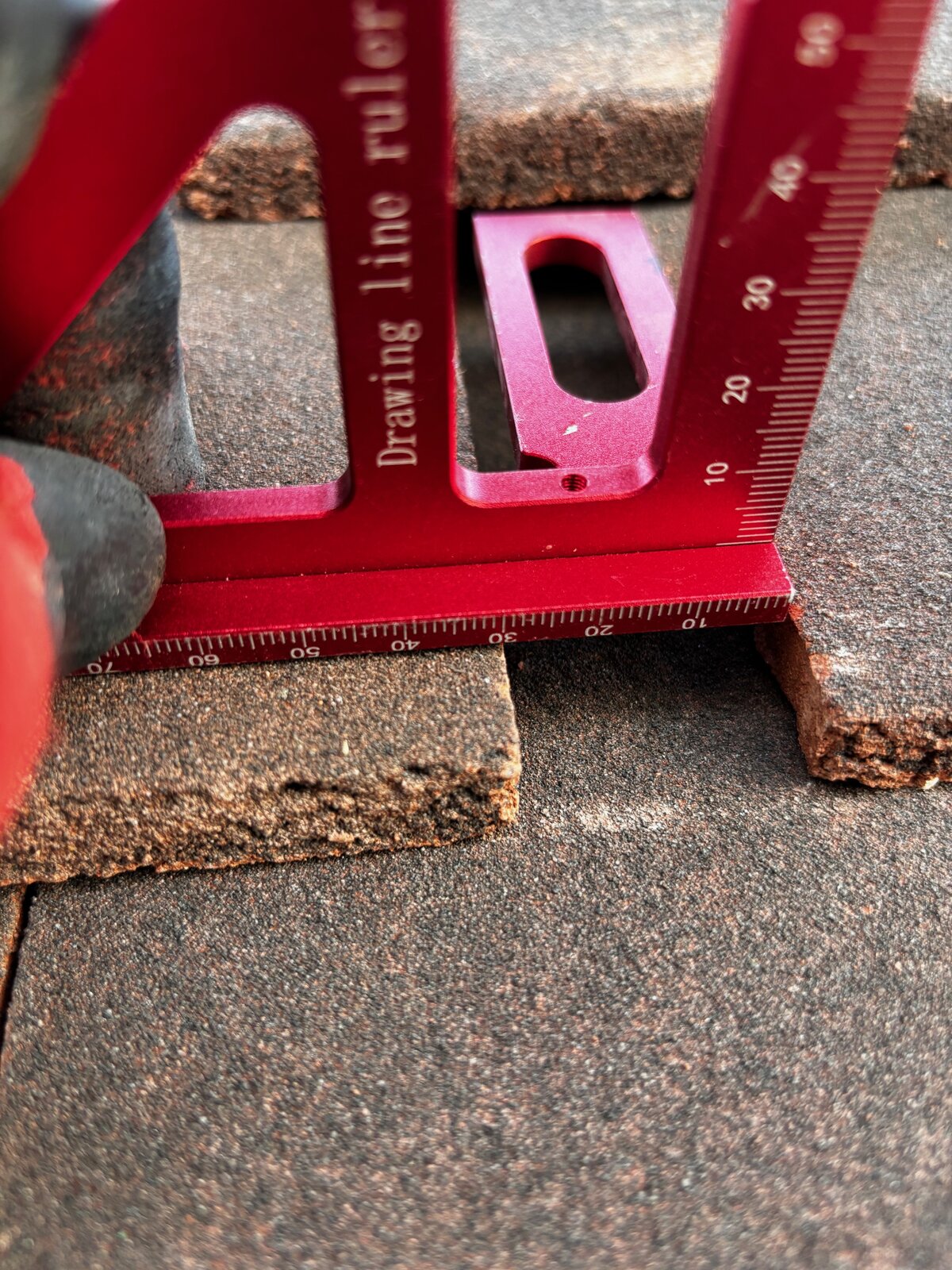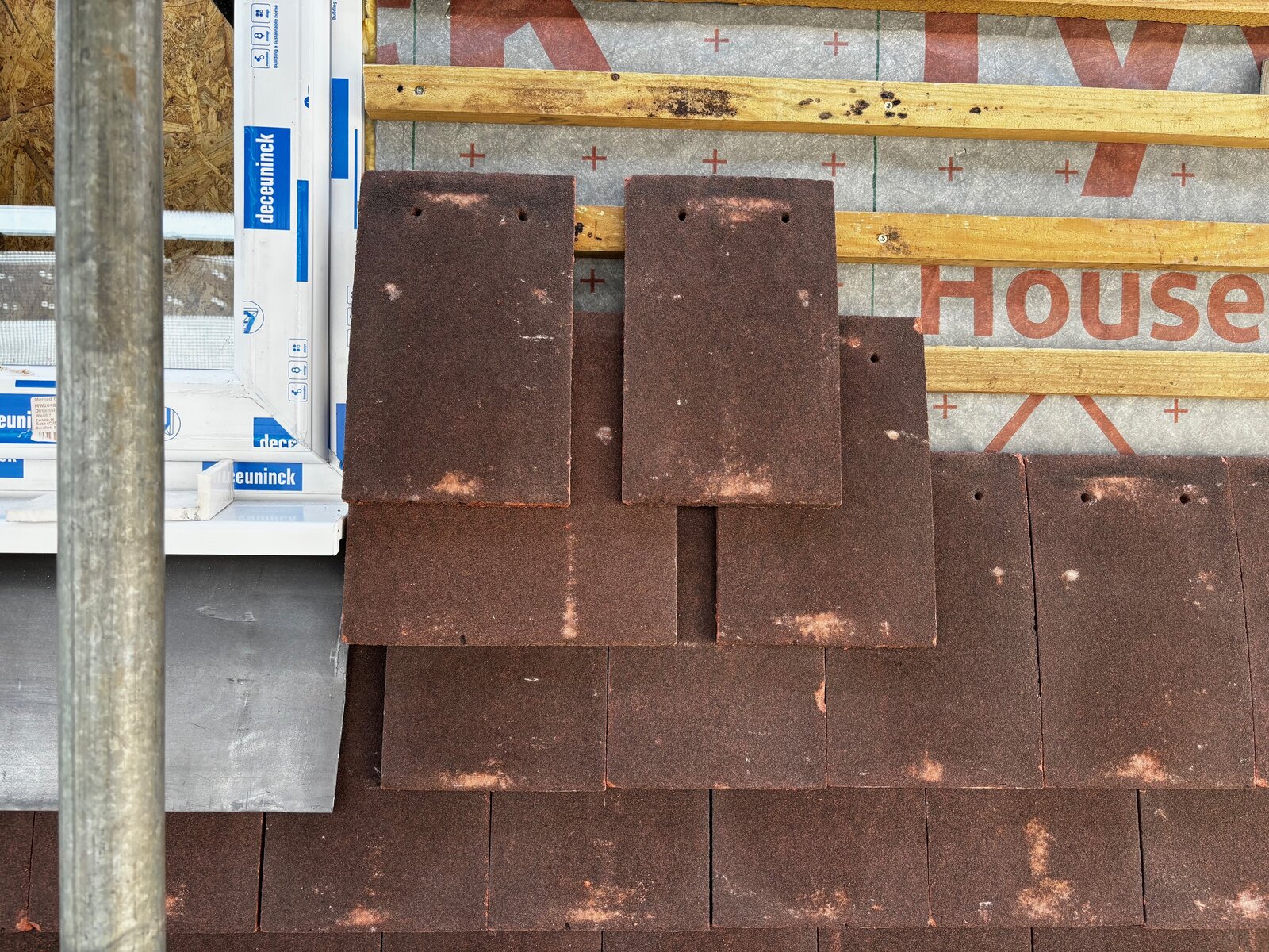 I've centered the tiles to the roof apex. Starting from the bottom and now reached window height. This window is (intentionally) off centre by ~30mm.