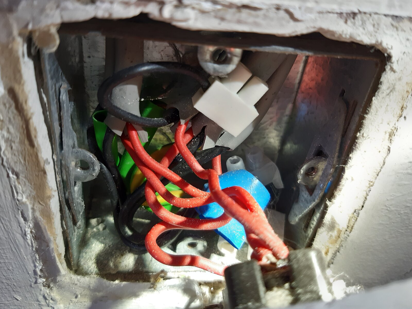 I'm in the process of decorating a room and as part of that am swapping out the old white plastic switches and sockets for chrome ones. Most are straightforward, like for like with obvious neutral, earth and live wires but this light switch has got me puzzled. Why are all the wires red, surely it's not all live? We have a 2 gang light switch next door in the lounge which has the same setup but just even worse.