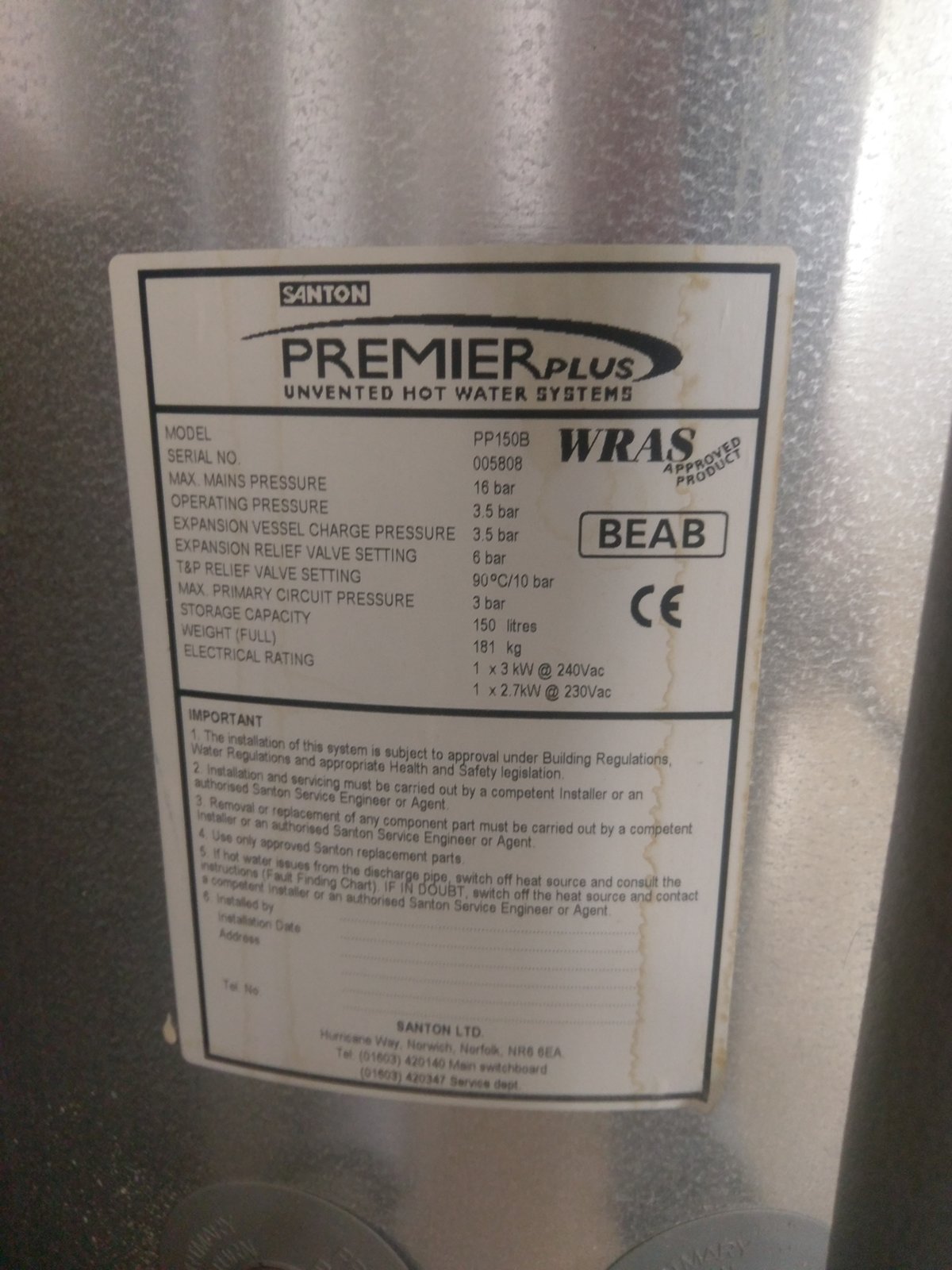 Im not at home at the moment and can't remember what hot water tank I have but I do know it uses a heating element rather than gas etc.