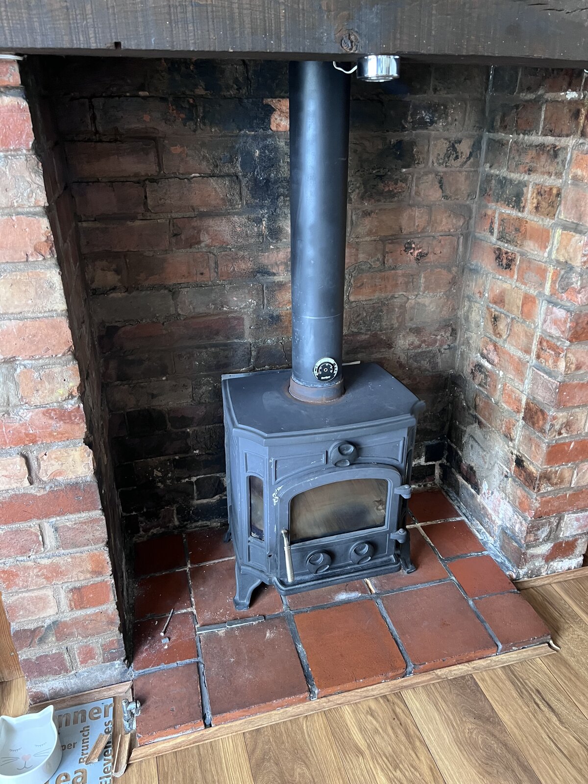 I’m in the process of laying a new 2 tile porcelain hearth for my new log burner and re pointing the back bricks.