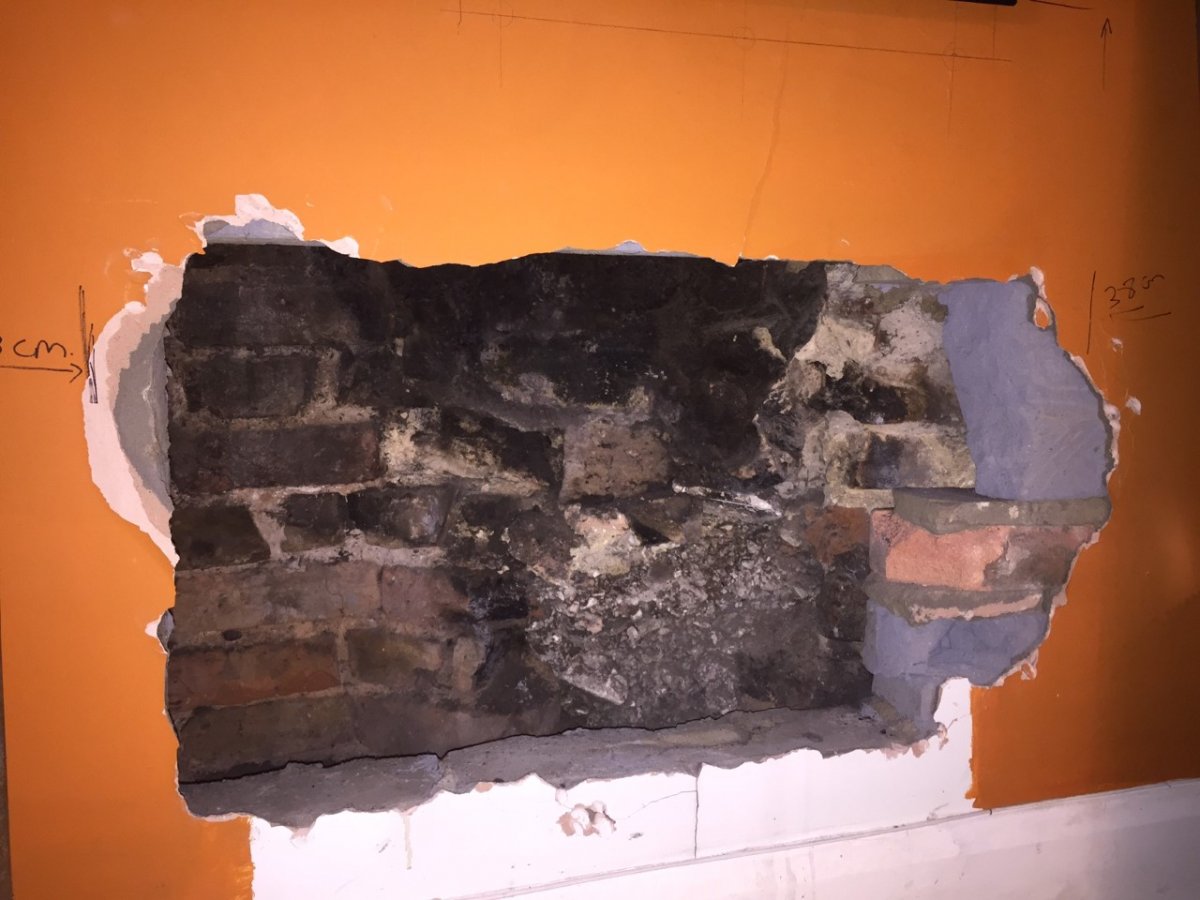 We're currently renovating a victorian terraced house. We've just knocked a hole into our chimney breast in our living room- expecting a nice square shaped chimney inside. It looks deeper and squared off on the left hand side and seems to be less deep towards the right, like the back wall seems to come diagonally towards the right hand side. It looks pretty rough in there so perhaps its just rubble but wanted to see if anyone had come across anything like this before? is it possible we share the fireplace with the neighbour and both sides are shaped like this? we don't want to start chipping away and end up in their lounge! I've attached pics to explain but any advice would be much appreciated. We'd like to install a wood burner which won't fit into this odd shape at the moment....