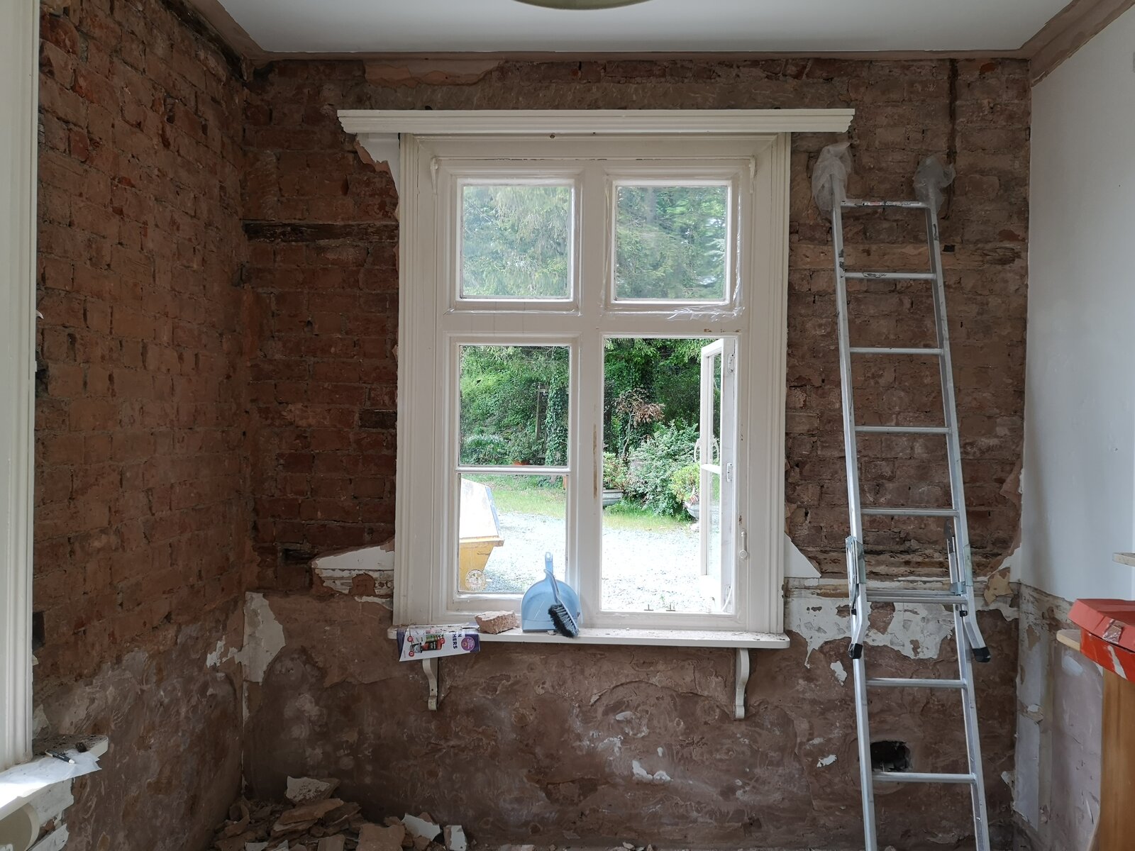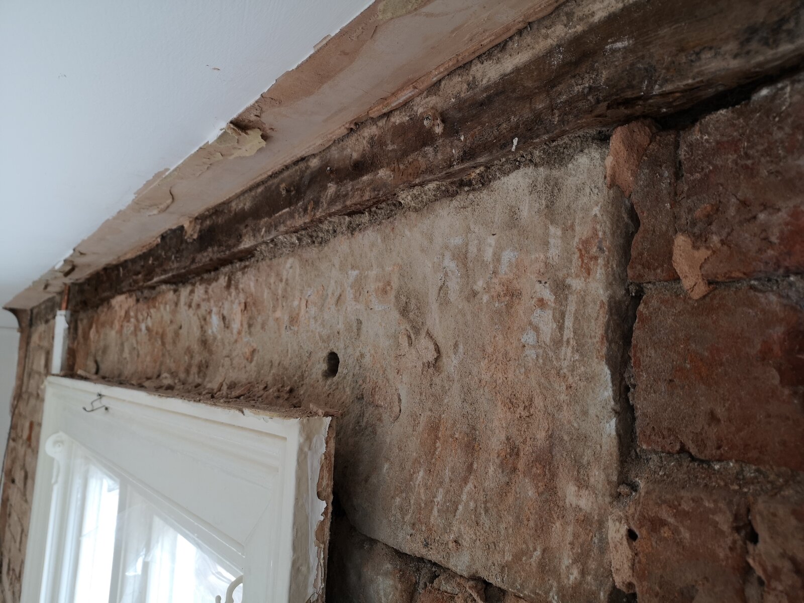 Will try to keep this as brief as possible... Every room has thick gypsum plaster on walls, first meter is rendered in cement. We are having new windows fitted so I decided to remove some wooden paneling on the walls and the plaster came off with it.