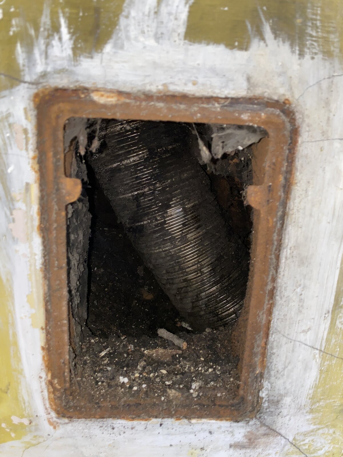 However, On the back wall (see pics) there is a metal flue cover of some sort, when you remove it you can see the silver flue liner from a ‘long gone’ gas fire in the back part of the living room (which would have been two rooms originally).