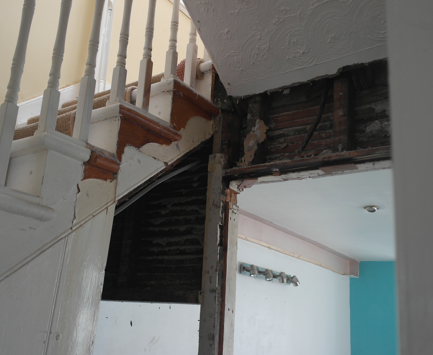 We’ve started ripping things out and we’ve hit the staircase... My question is what is supporting the return on the staircase pictured i.e after the landing?