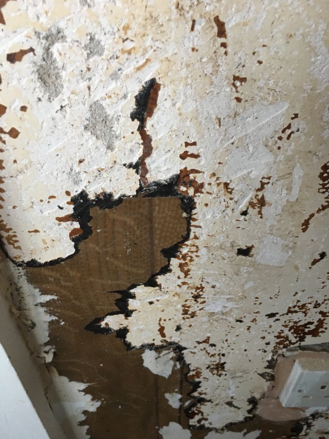 My daughter has moved into a house which has layer upon layer of wallpaper on the hall and stairs. After scraping some of the paper off we've come across fake wood paneling which is made from vinyl panels stuck to the wall with a black tar like adhesive. I seem to remember these being popular in the sixties, seventies and so i reckon they've been there for decades. They are stuck to the wall for a metre or so up and likely a dado rail was there at some time.