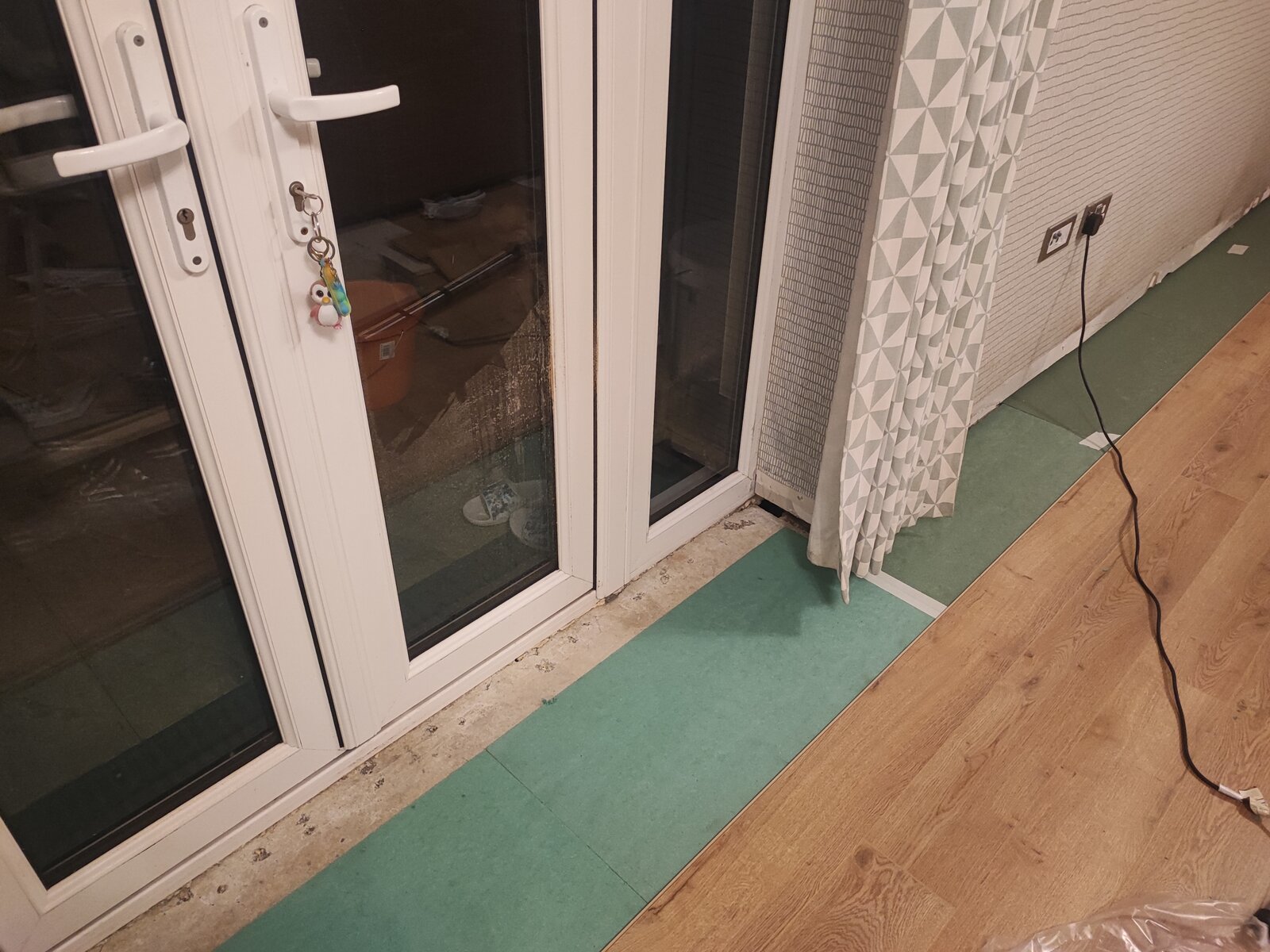 This is outside wall facing north and is suffering from damp and moldy spots around garden door frame.