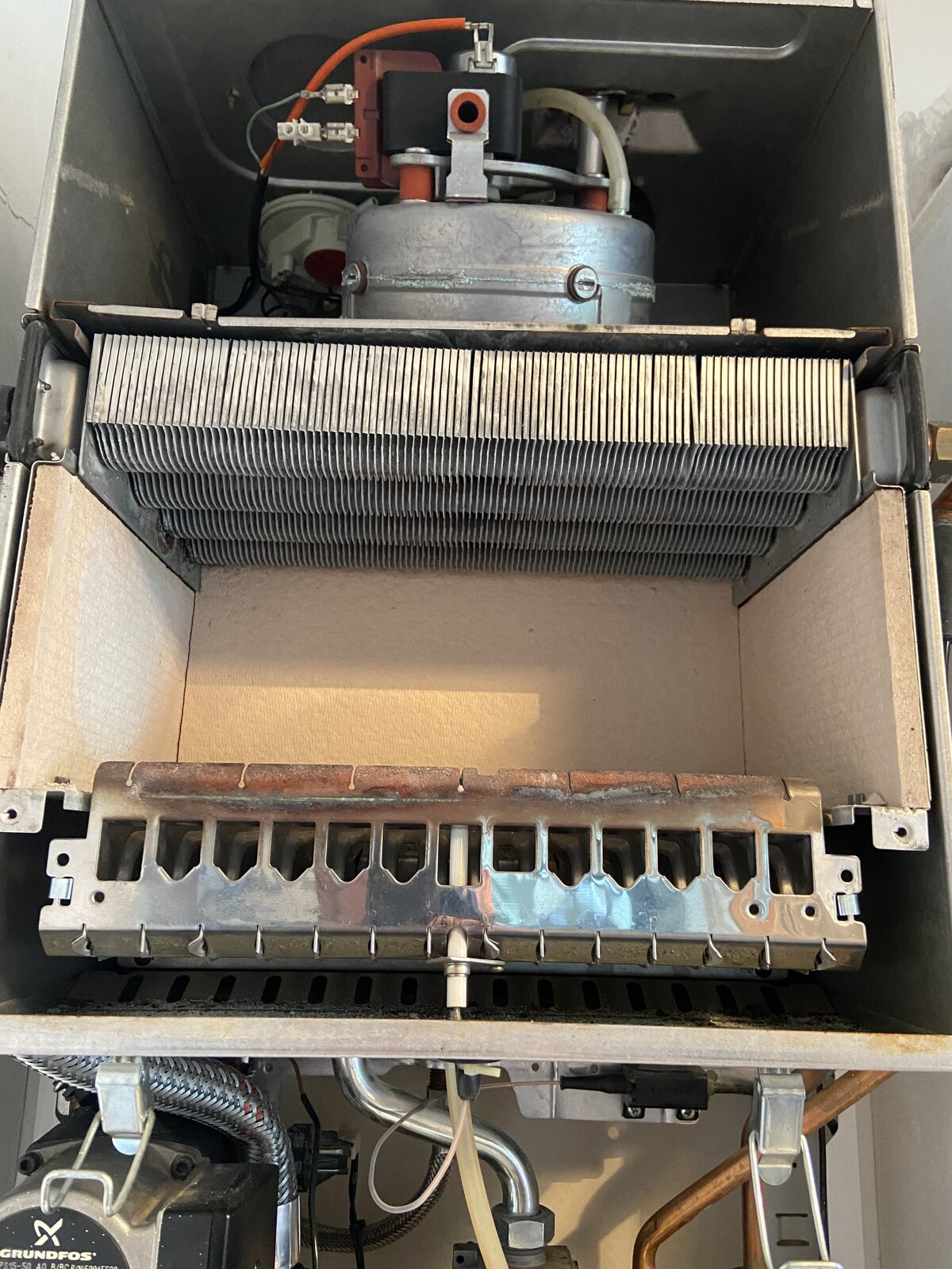 Went down under the floor this morning looking for any sign of water but nothing there either. From checking the heater exchanger this morning it seems pretty corrupt and damaged at parts. Could this be the problem?