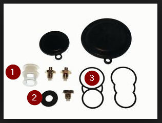 Recently I replaced the 2 diaphragms and brass nozzles and the figure 8 style seal. I couldn’t figure out where one of the washers in the service kit went, nor where the little white plastic insert type thing should go. In my attachment I couldn't figure out where 1, 2 or 3 went. I guess 3 is for boilers that take the other seal shown. Any ideas on them would be great as I can’t figure it out from the exploded view in the manual.