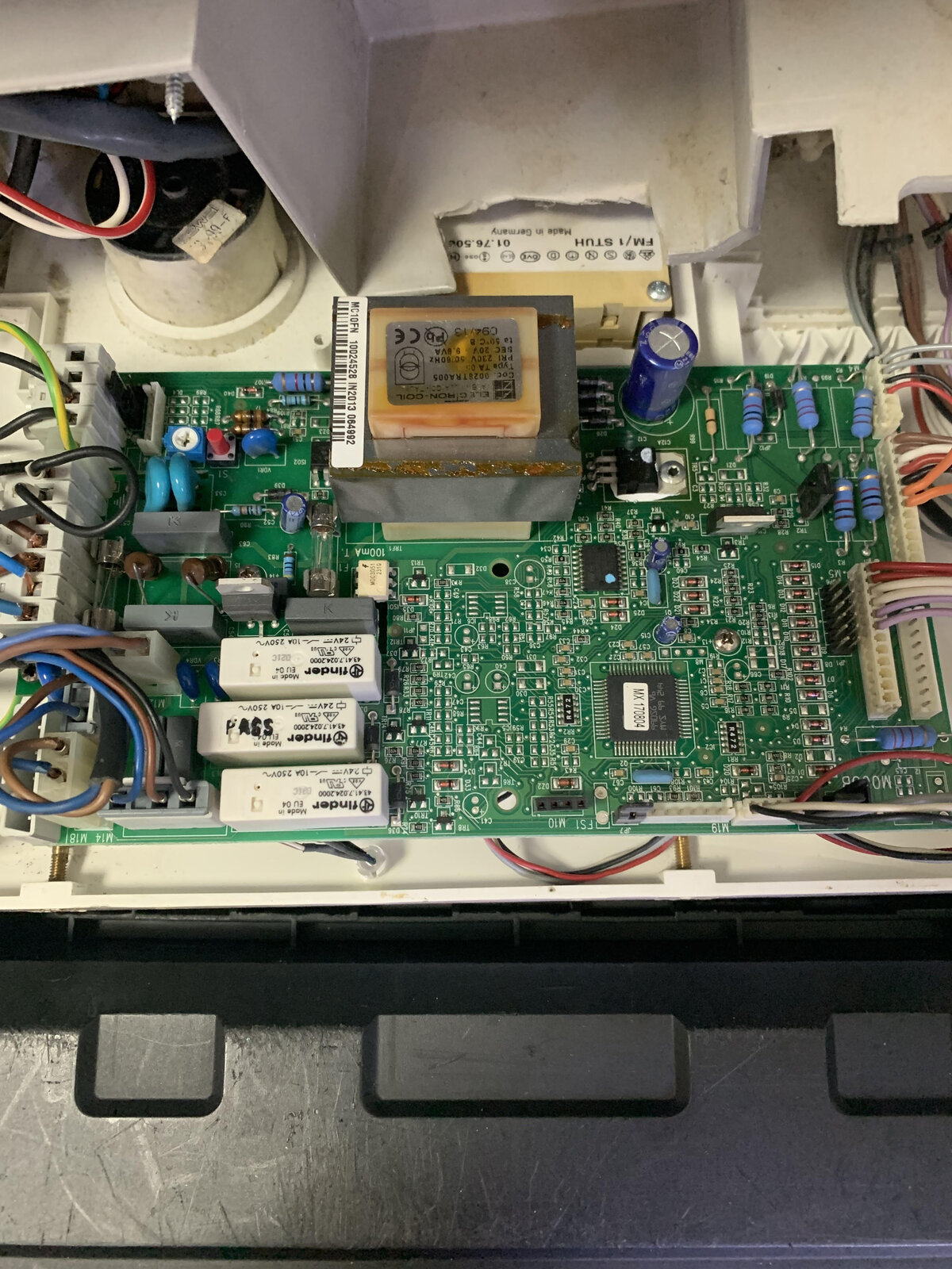 I could hear a relay clicking on and off in the boiler, when the error codes were being displayed, and on checking the PCB it appears to be coming from one of the 3 large white ones.