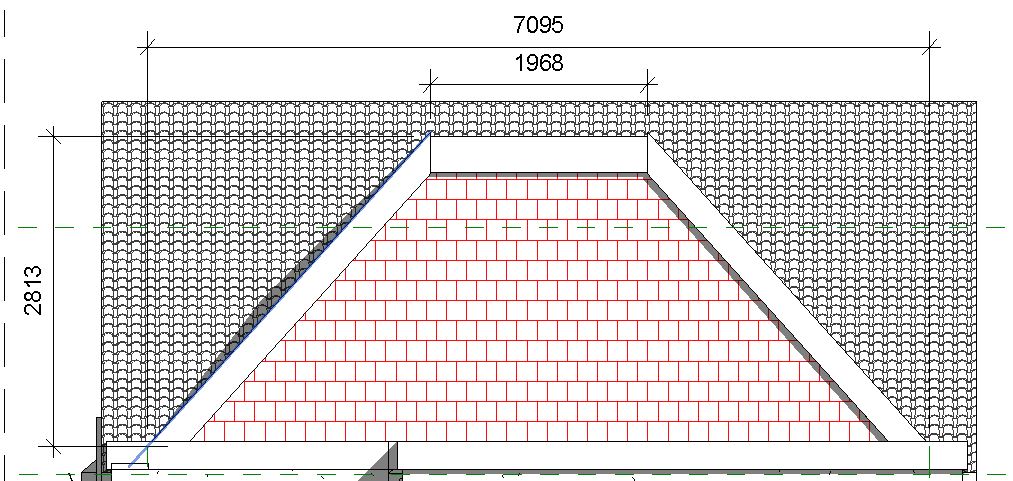 Note that this is an overestimate as the 7095mm length is longer than the bricks shaded area (it includes the roof area).
