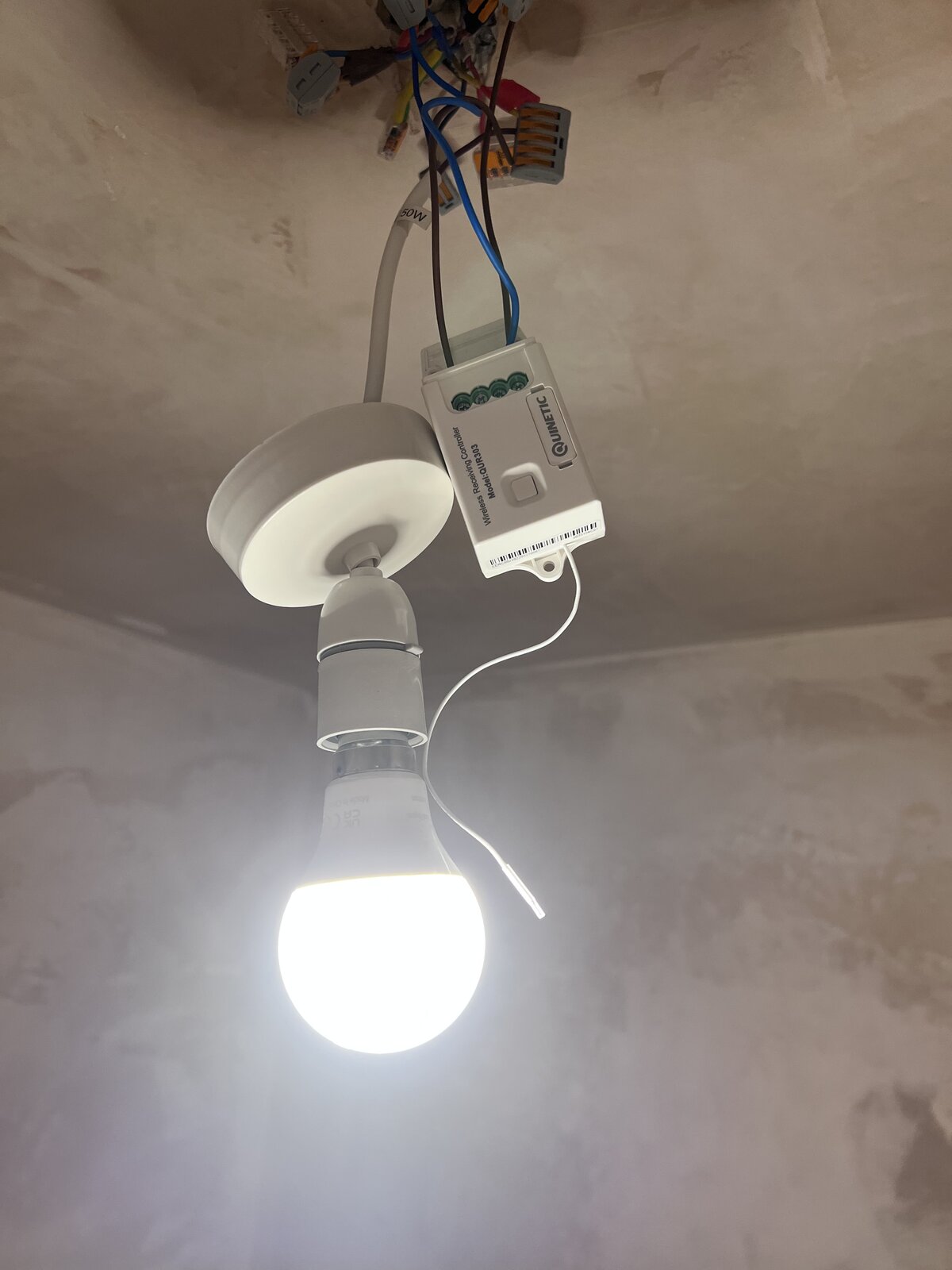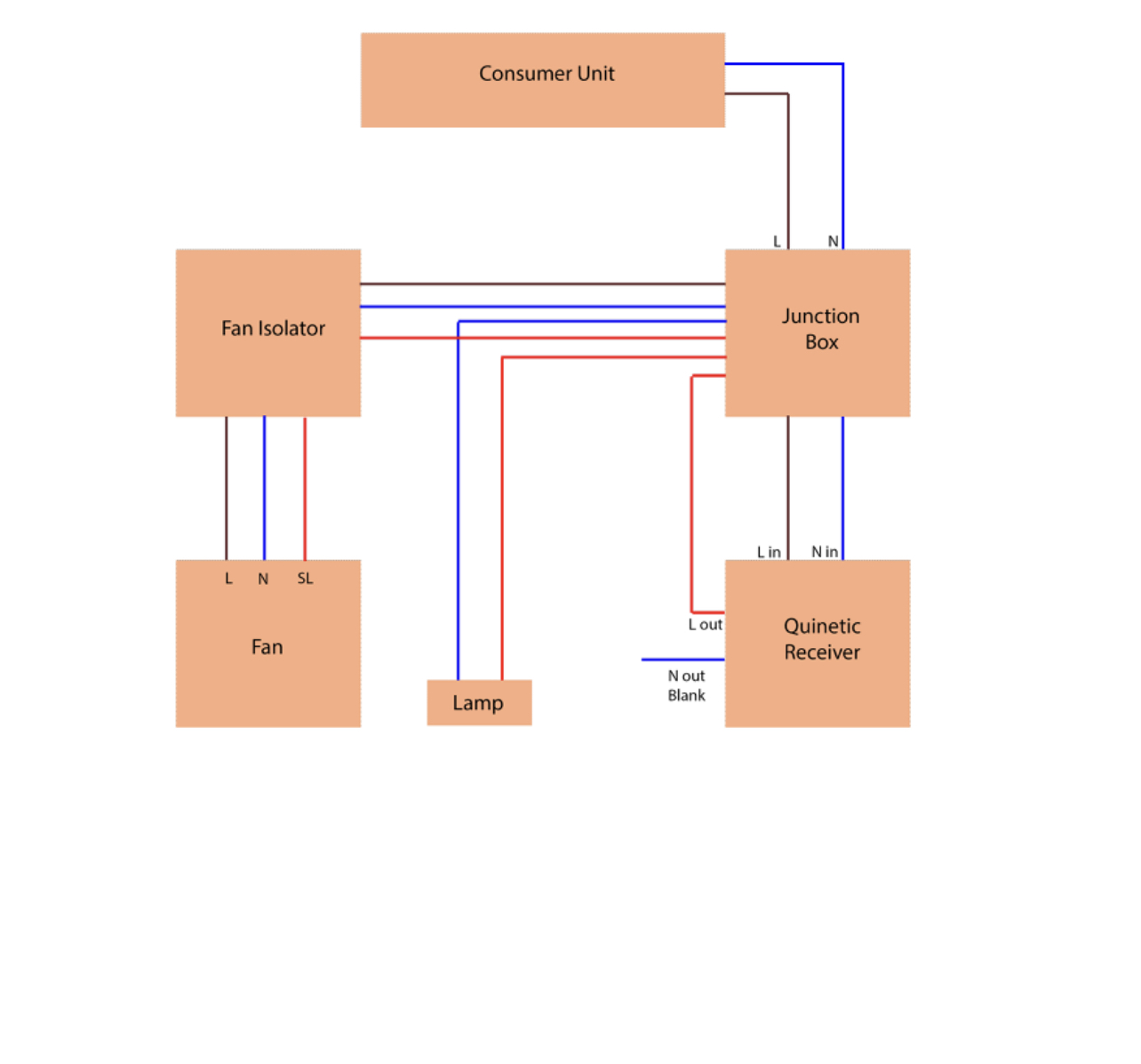 The Quinetic switches don’t come in a double pole version so I have wired the switch lives for both the lights and extractor into the same terminal for them to come on at the same time. For some reason, depending on which scenario I wire at the lamp, I have an issue whereby when turning one of the light on turns the other room on at the same time.
