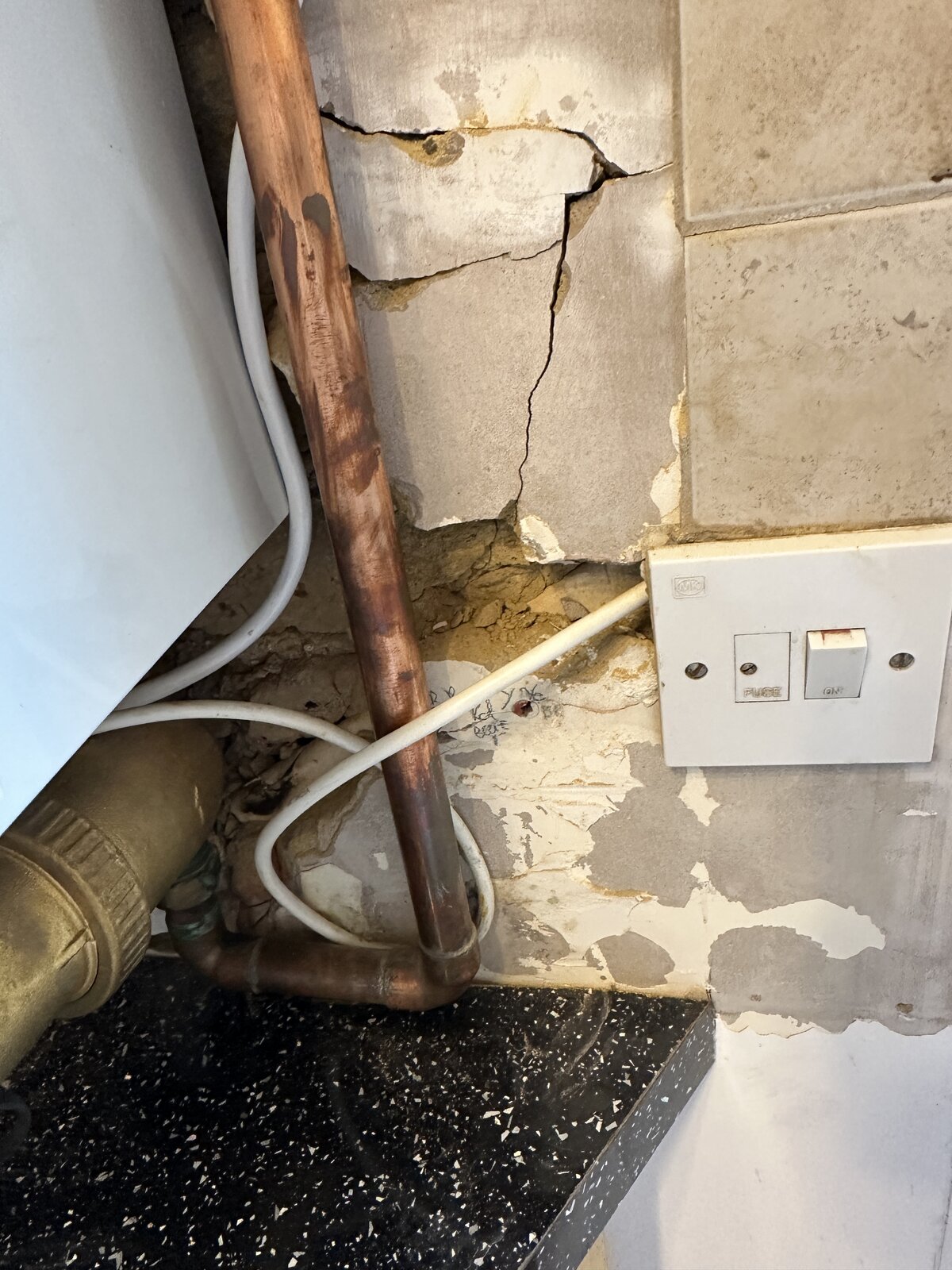 The issue is - there are dust particles falling off the wall and spreading all over my kitchen with boiler use.