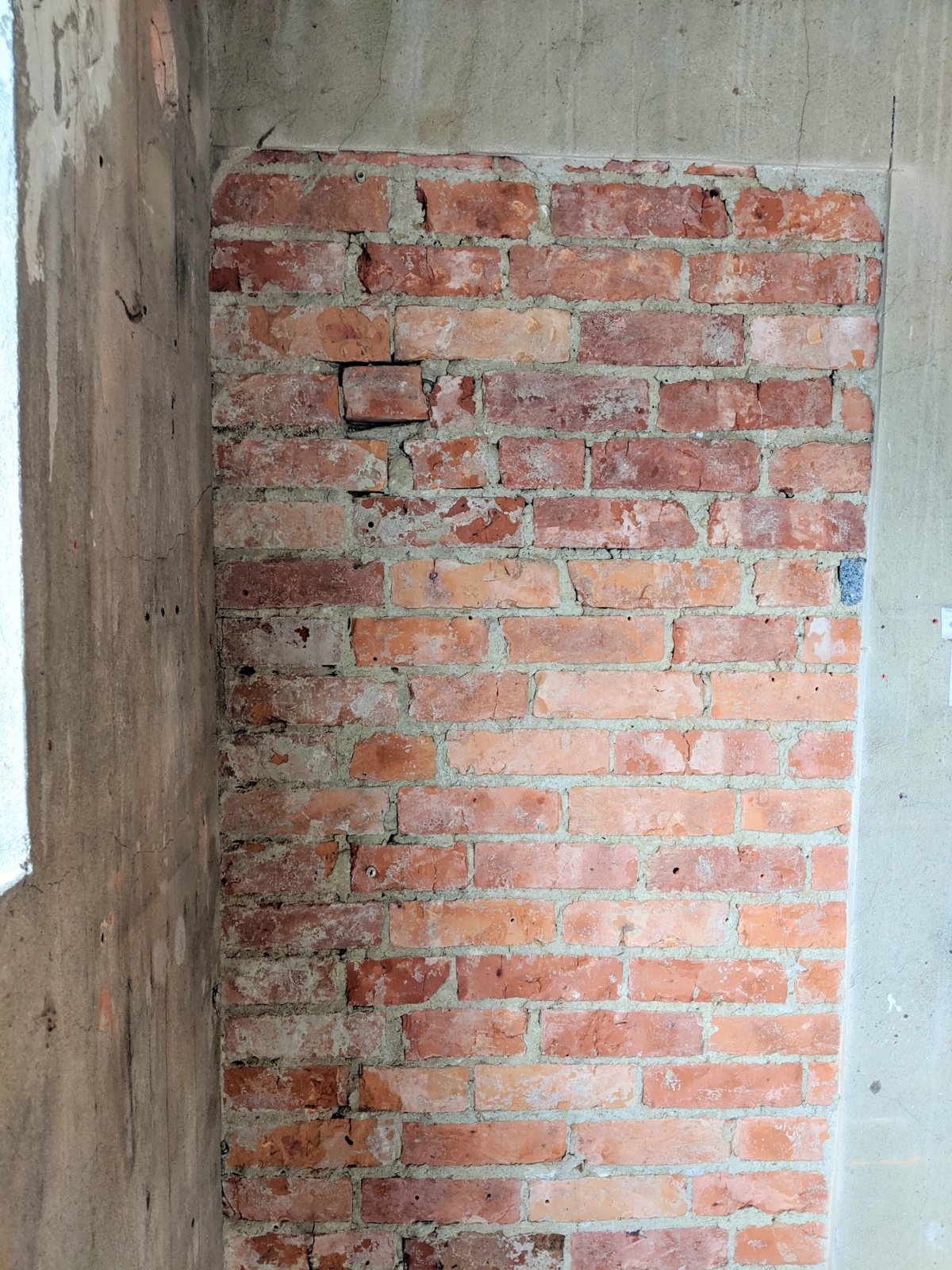 Brick wall on the right is single and the brick wall on the left is double (external). This is a 1930s property.
