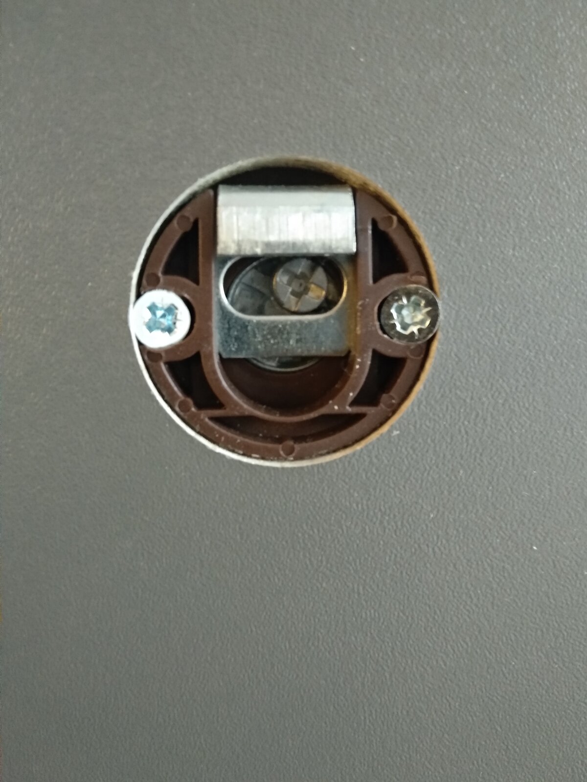 The bit on my picture is in the back of the cupboard, it also can't be seen from inside the cupboard. The wall I am putting it in had a noggin at the correct height to screw into.