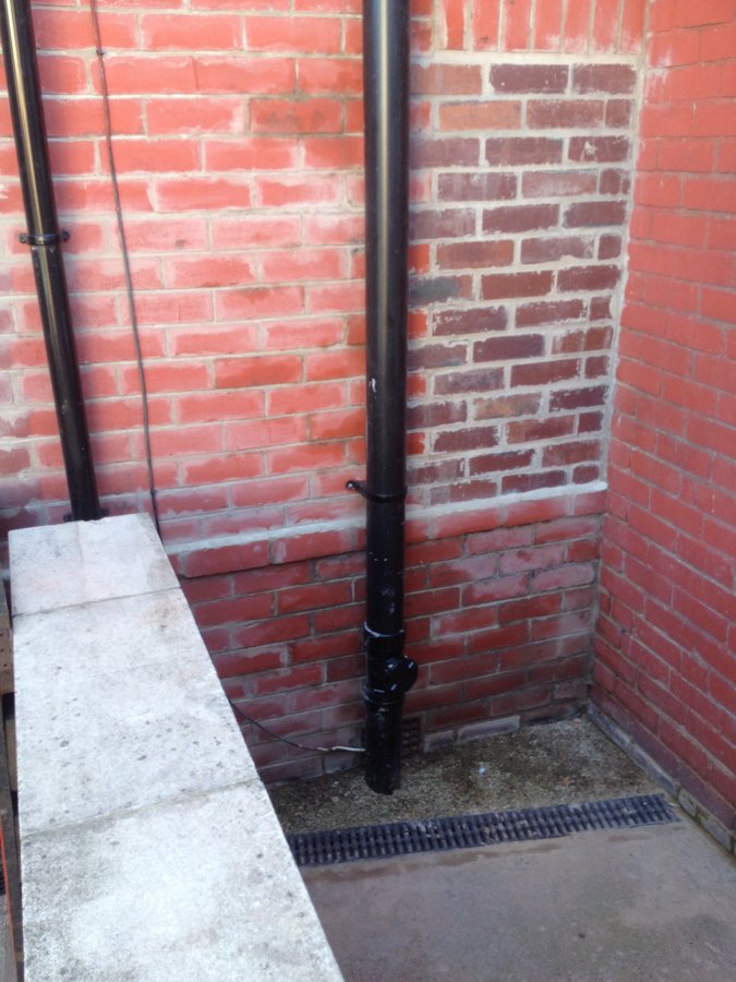 Prior to this there was a hole in the wall higher up where the soil pipe was and the bath outlet pipe. These were open for quite a few months as the house was renovated. On two occasions we had a heavy rain and i think water tracked into these holes and it came through on the inside wall in the lounge (behind the blocked up window).
