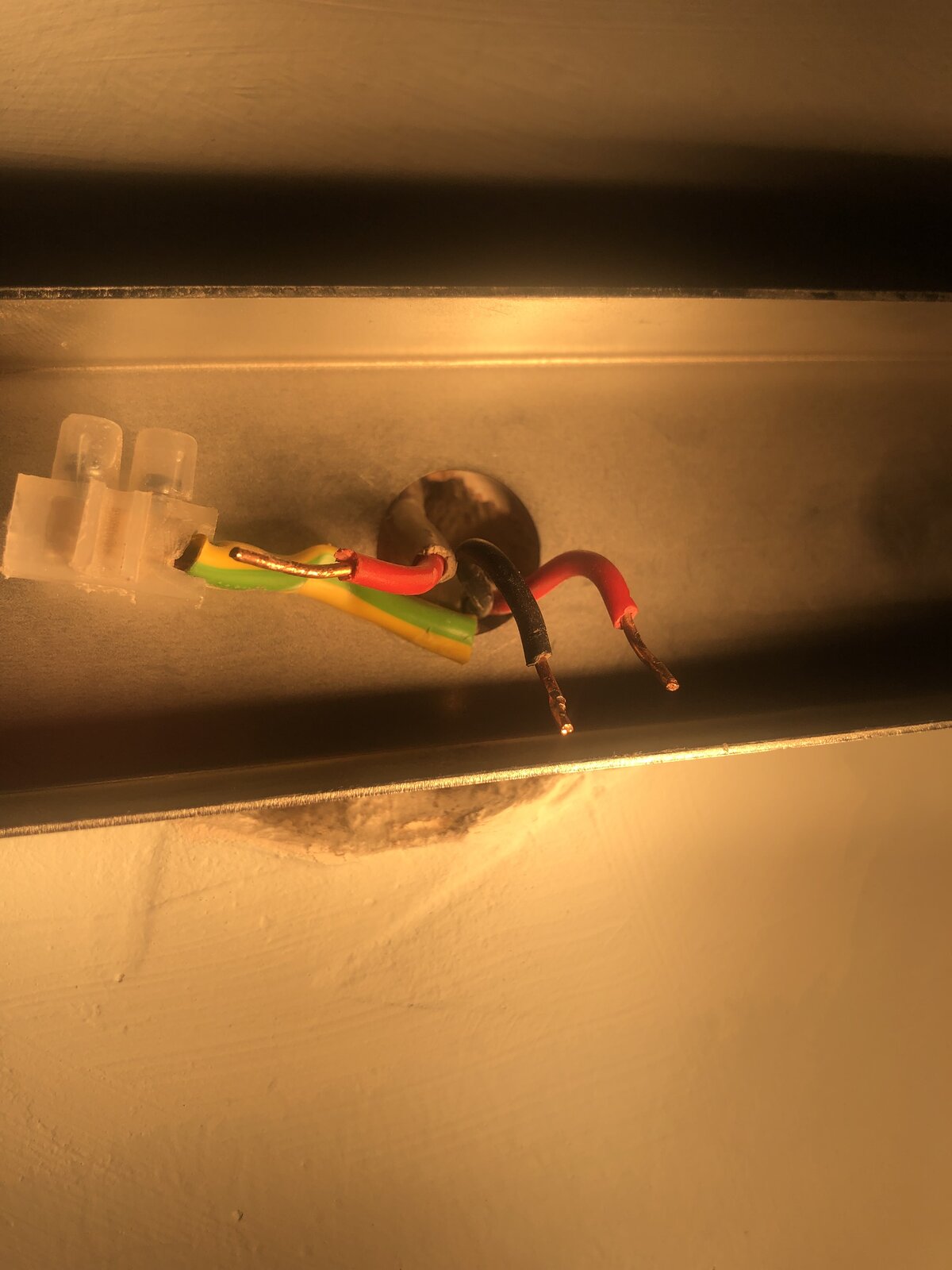 2 black wires and a red wire and a possible brown sleeve ( see diagram). The other light is 2 red and 1 black. Please see photos and any help appreciated. I need to connect this pair. Thanks.
