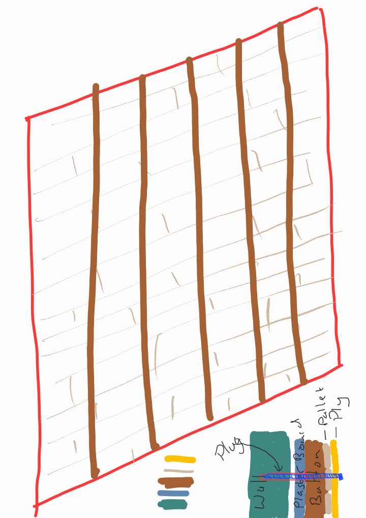 The wood is secure with nails on 5 1.5" x 2.5" buttons running vertically.