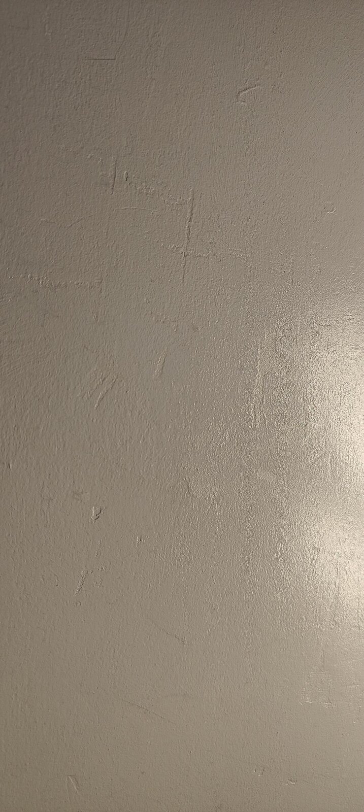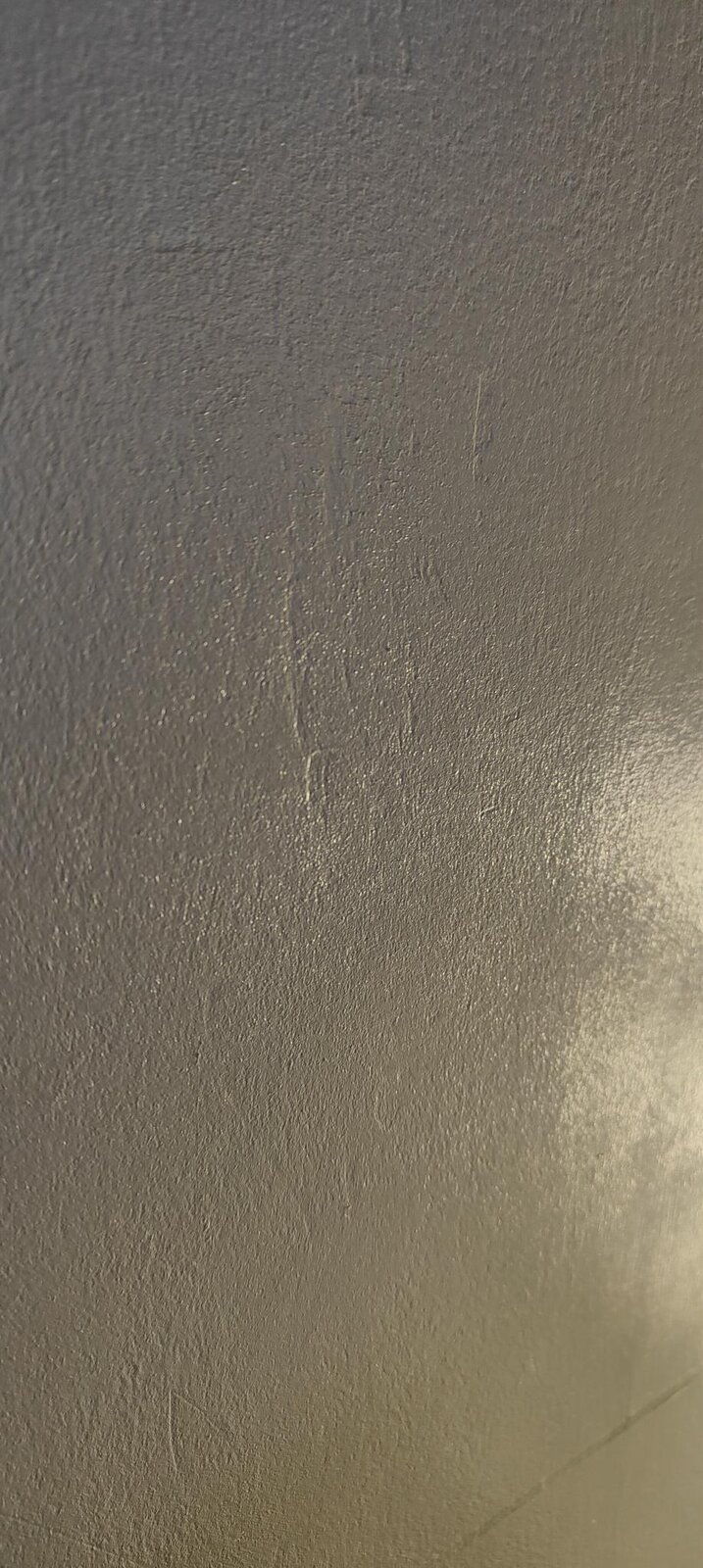 This wall had wall paper on, but it was scraped off and ended up marked (See Picture) Then it was just painted over in silk..