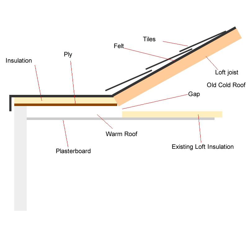 I hope this is the right place, I have recently had some building work done but am perplexed by what has been left on the join between the new flat warm roof, and original pitched roof (cold?)