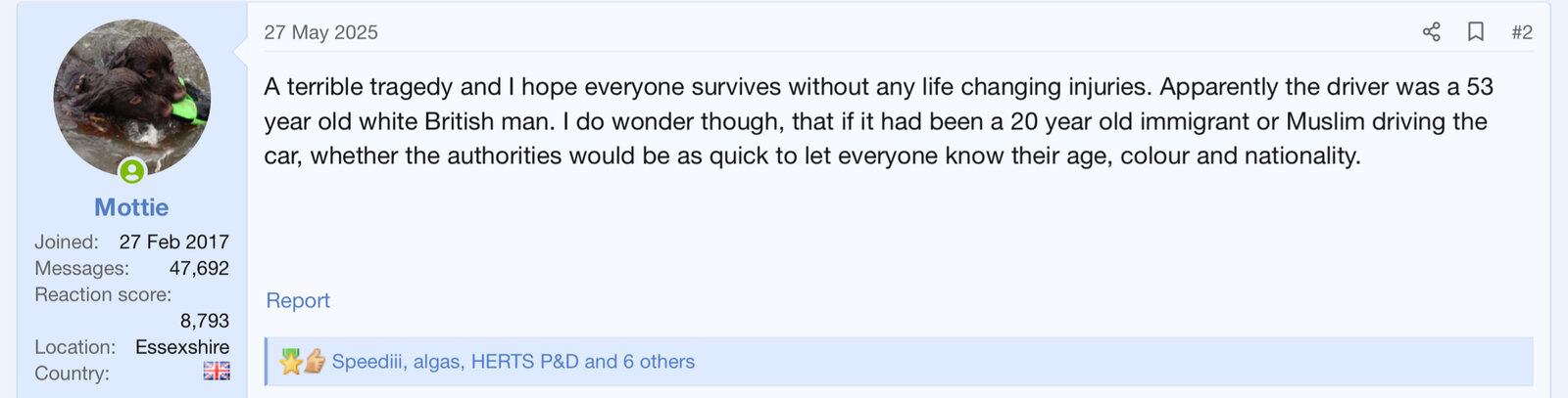 Remember the Liverpool ramming? The police were quick to tell us the age and nationality of the perpetrator. At the time, I said: