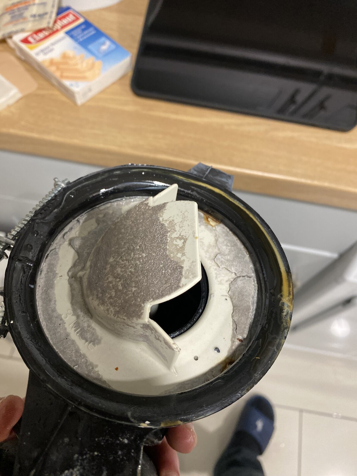 Also, there is this plastic part which goes from the base of the drum to the drain pump and its covered in what looks like mortar (pic attached). I can probably scrape this off but what is this stuff? Limescale and soap?