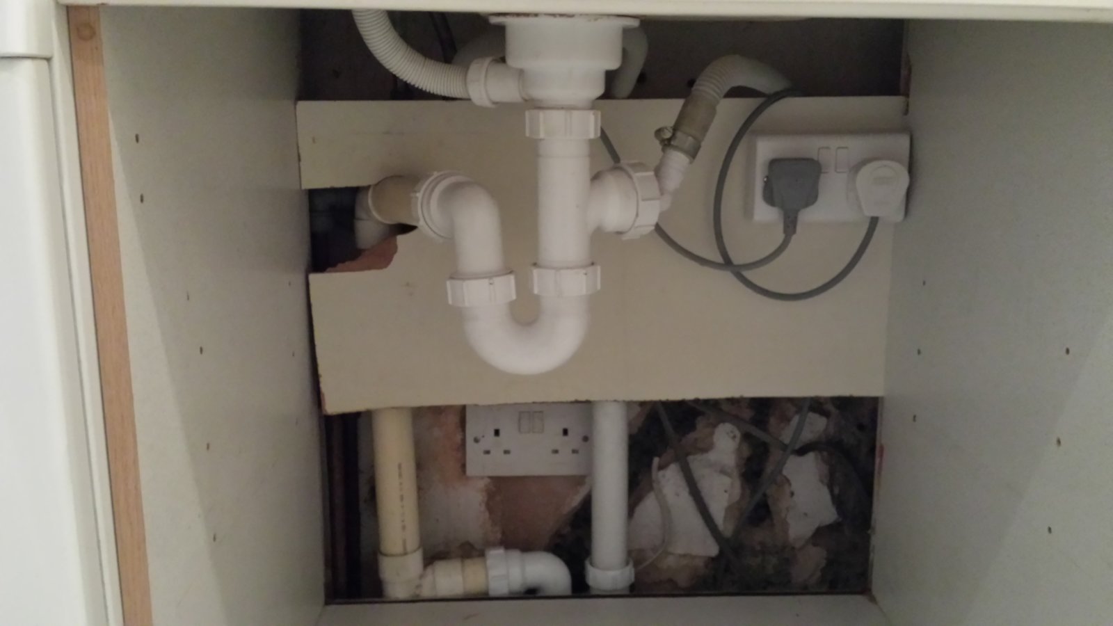 When my washing machine pumps out, after about 20 seconds, water starts overflowing out of the top of the downpipe behind the cupboard. I have removed that waste pipe, the ubend and the 90' connector to the off white connection to the down pipe from the sink waste pipework, and there is no sludge or obvious blockage. The sink drains freely, so I uncoupled the ubend, rotated the 90' bend upwards, and put the washing machine's waste hose into it, and ran the washing machine.; as long as I held the waste hose hard into the 90' bend it didn't overflow, if it wasn't pushed hard into the 90' bend, it overflowed.