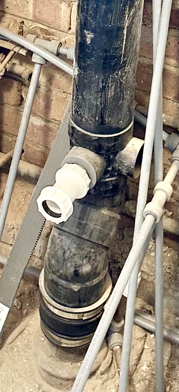 I’m working in an apartment on the top floor of a 4 story building. The sink connects to an internal waste stack that descends vertically to the bottom of the building. There is an offset in the waste stack just below where the basin connects to the stack.