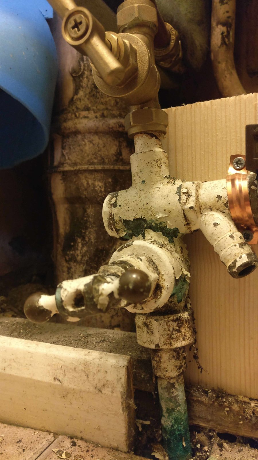 When I initally replaced the float value we noticed that the main stopcock wasn't completely shutting off the flow. Unfortunately the old one is soldered in about an inch from the ground - the first plumber who came out to replace it declared the job too hard and stopped answering the phone, the second put in the new stopcock above the old one.