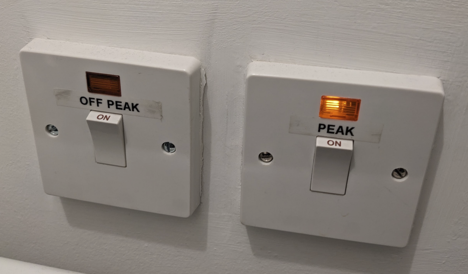 Water heater works fine when we use the Boost/Peak function. The switches have LED lights above them to show when they're receiving power. Off Peak doesn't light up anymore, Peak works fine though (just costs a lot more and is very inconvenient).