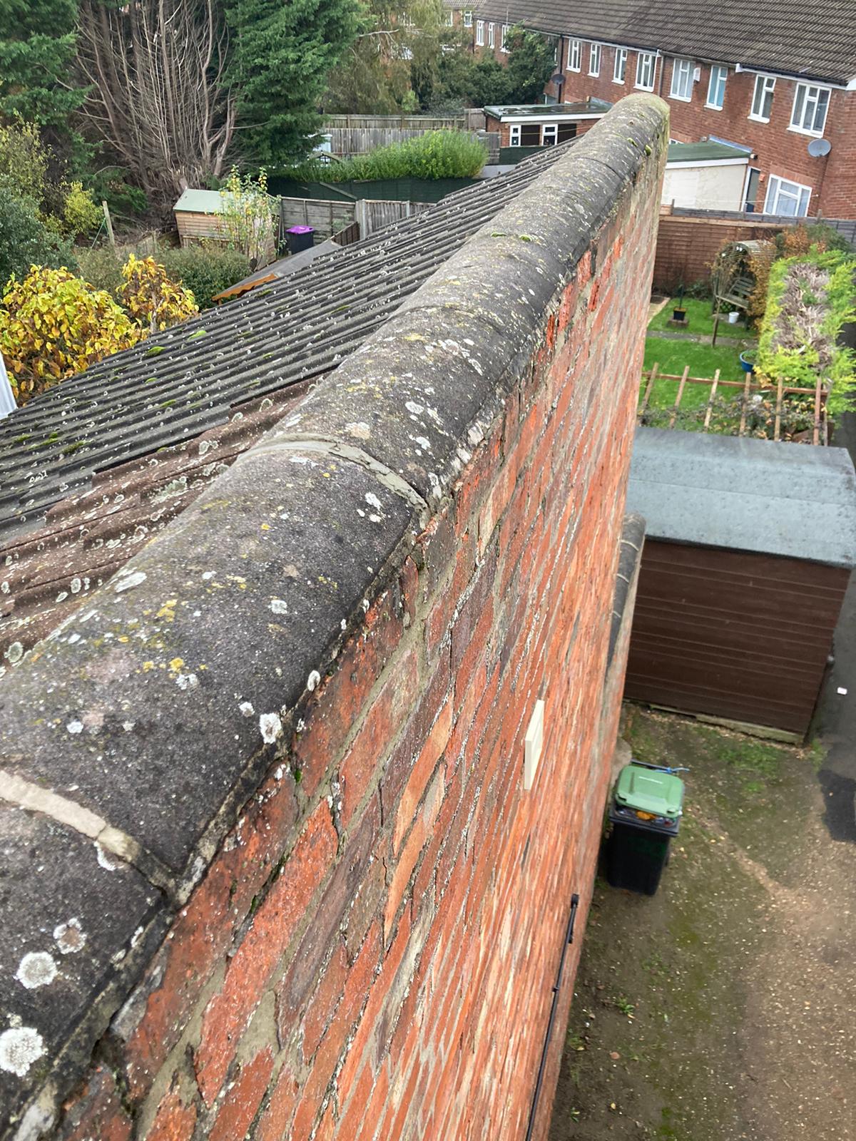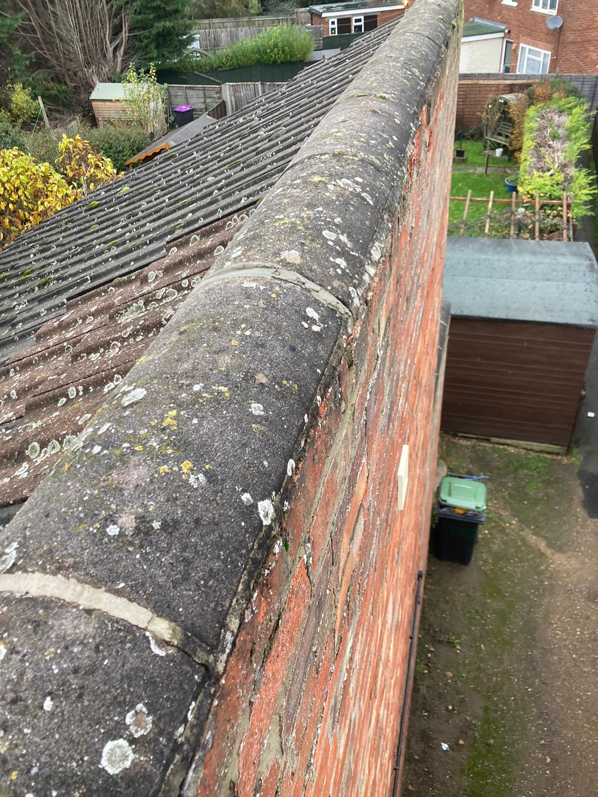 On the initial assumption that my diagnosis is reasonably accurate could she get away with repointing the capping tiles without having to take them off and re-bed them, and repointing the brickwork?