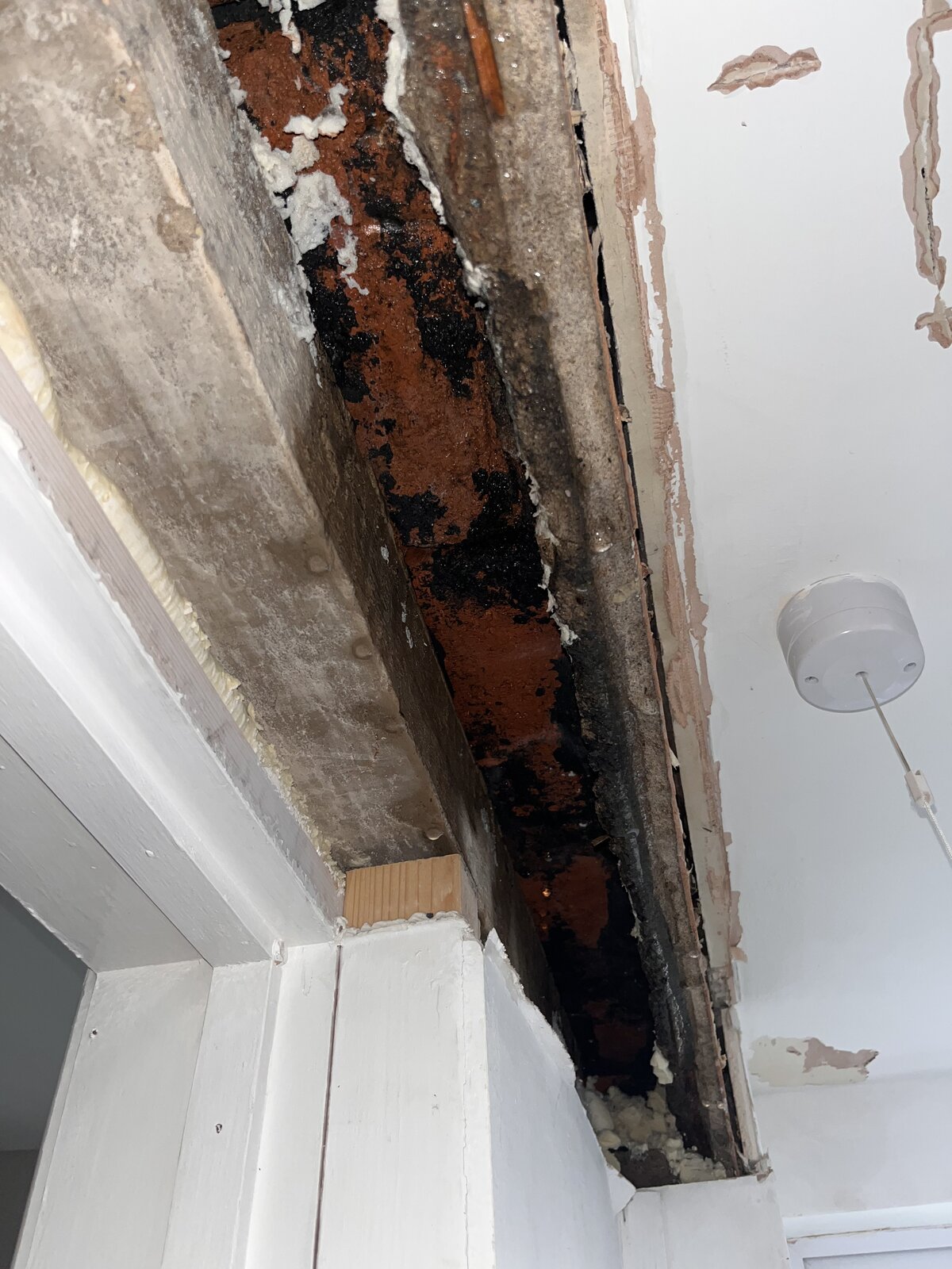 Hi mate, iv attached several photos. The cleared cavity downstairs is where the leak is. And iv also taken photos of the upstairs box room window, as you can see there’s an old damp patch on the floor from around 10 days ago. This started drying out, but now we’ve have more heavy rain today the internal wall has started to get wet again. Iv attached photos so you can see. The photo showing water droplets are the external skin of the upstairs wall.
