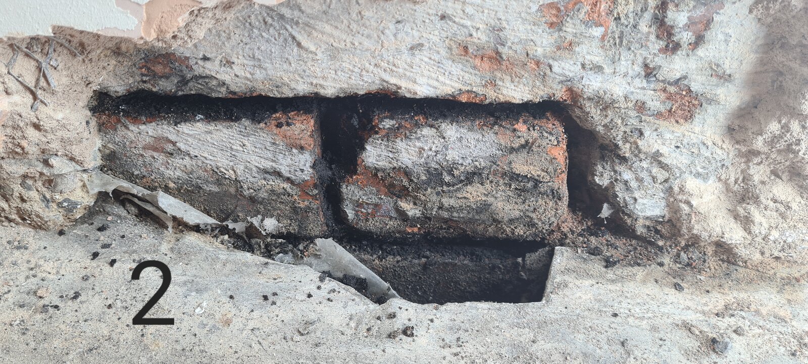 Photo 1 and 2 show the bottom of the chimney stack, water is pooling here as its raining heavily today. So it's def a water from below that's causing the issue.