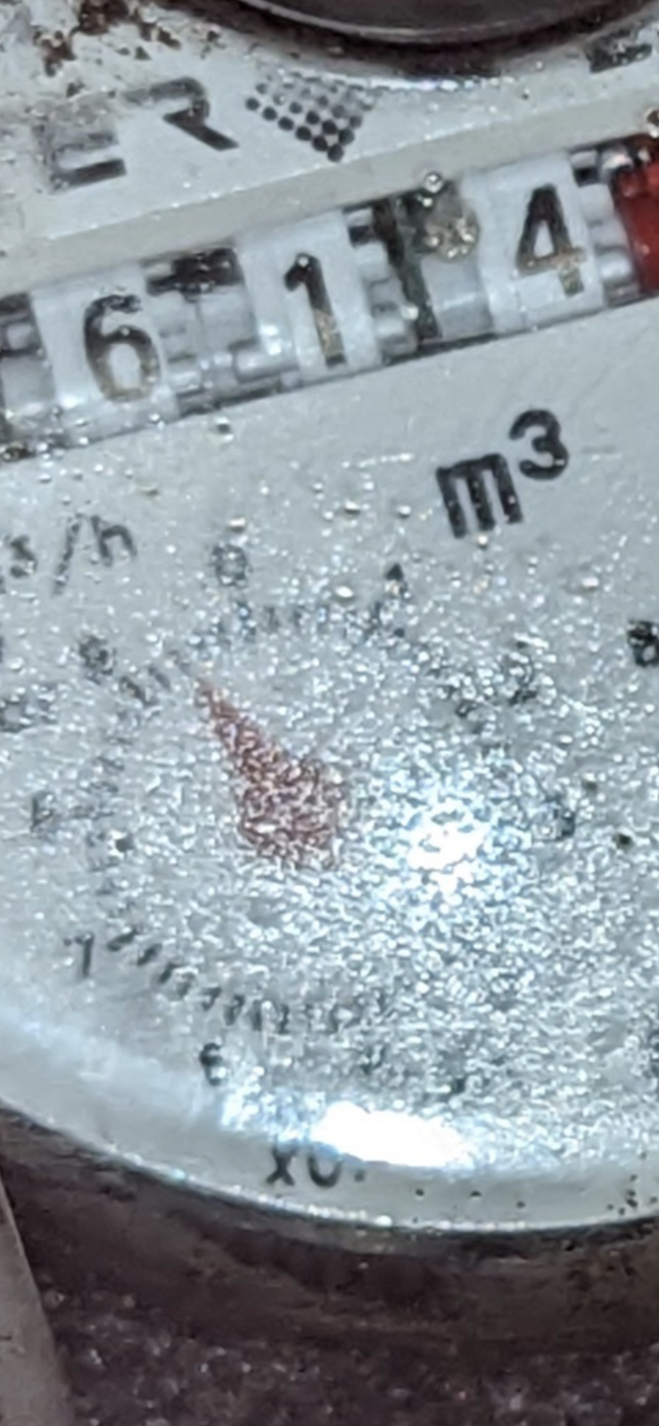 My x0.0001 water meter needle moved slightly in 20 minute period. Pictures attached. Very slight movement. Stop clock not turned off.