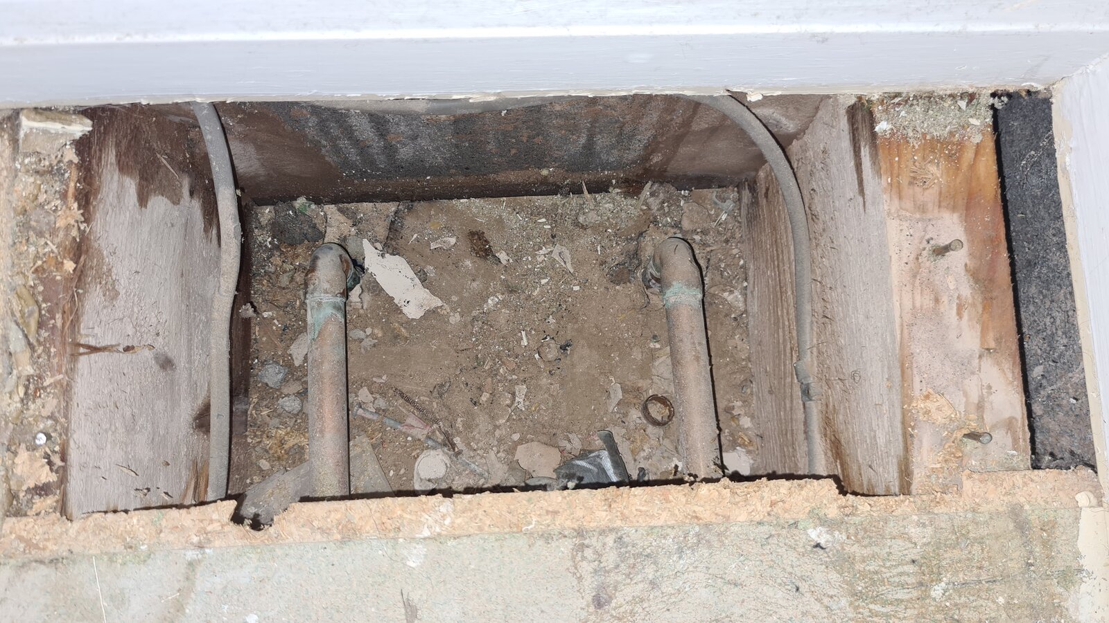 I've had the floor board up where the other side of the pipes are, again these look bone dry, however the joists also look wet.