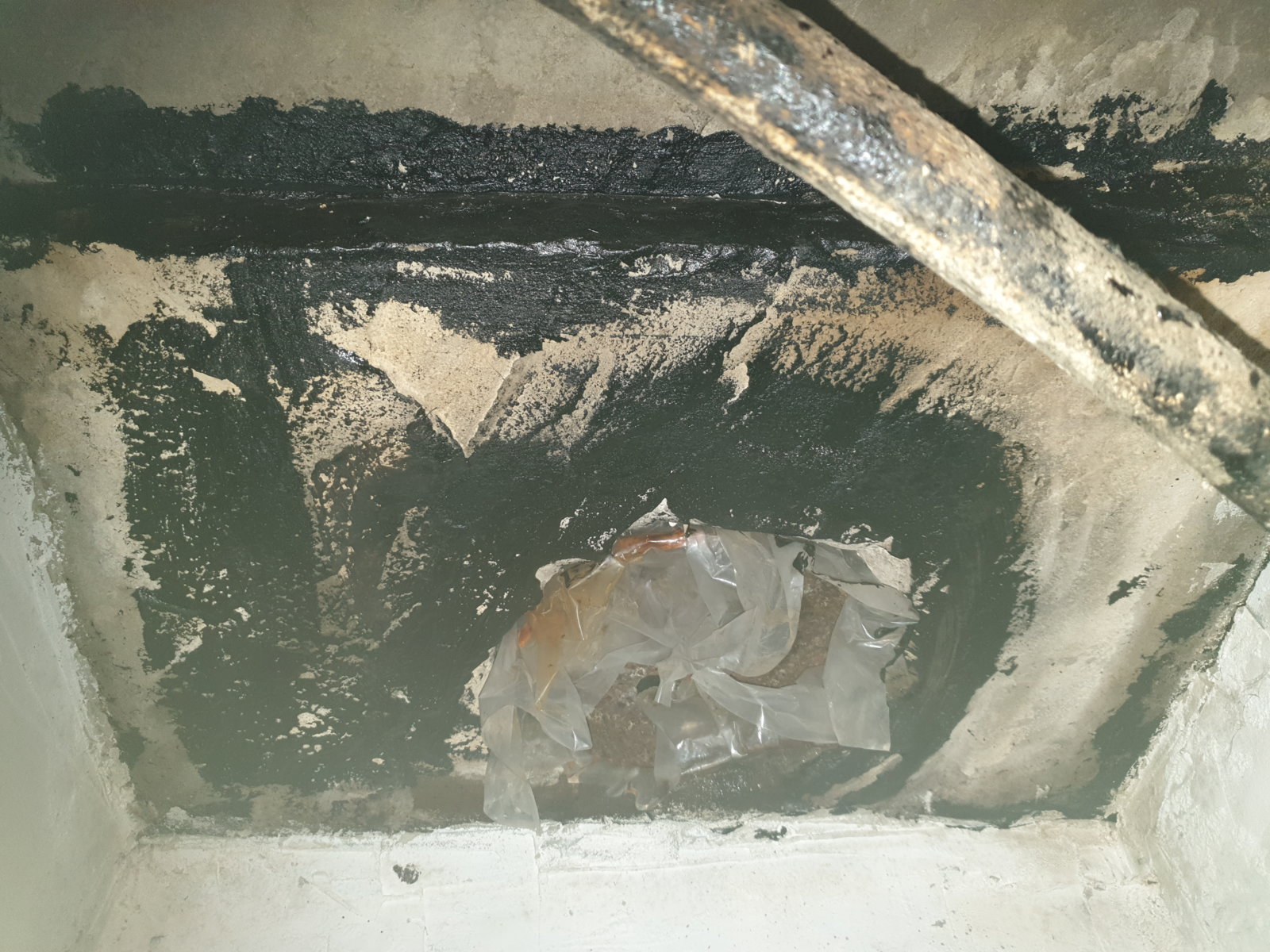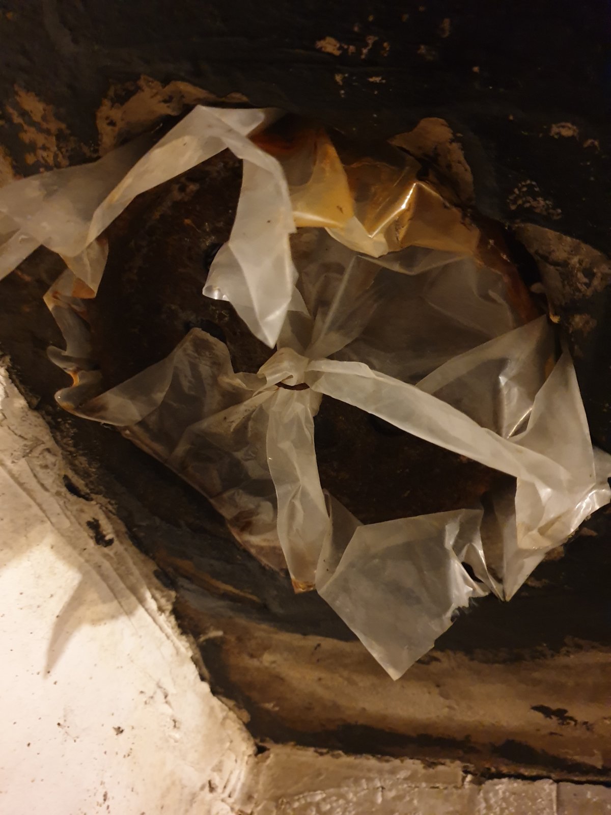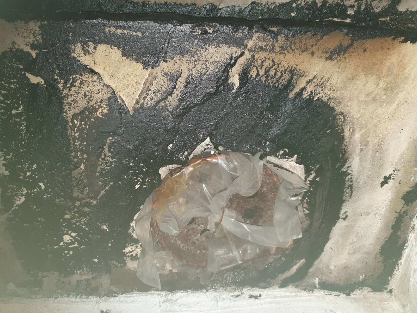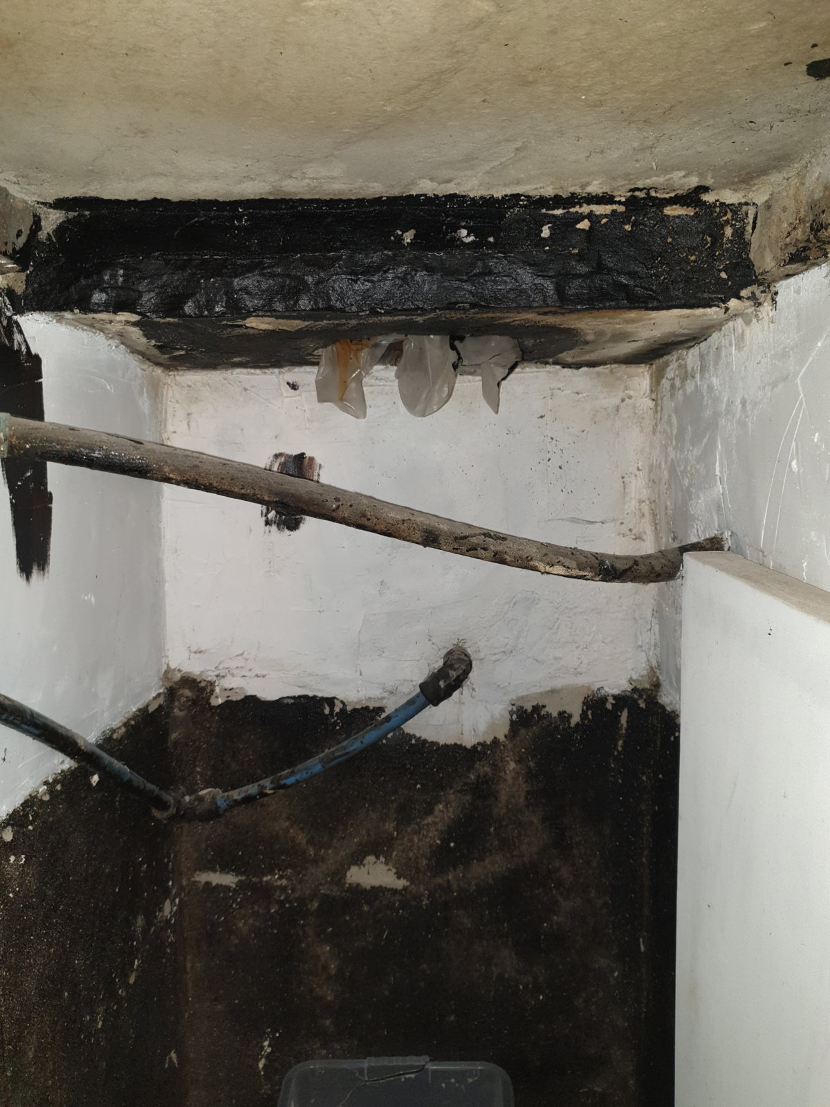 We have a very old basement, that I think is waterproofed near the end. Just noticed today that water is leaking in from the ceiling, which has a kind of hole with some sort of metal object attached to it (rusty and wrapped in plastic), seems that water leaks around that metal object. Could anyone help me to identify what that thing is, and whether there is a way to fix it?