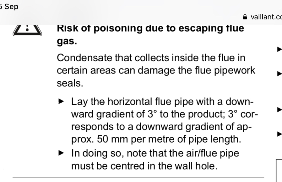 I then did some research about the Water leak and discovered that the Flue should have been installed levelled which is not the case.