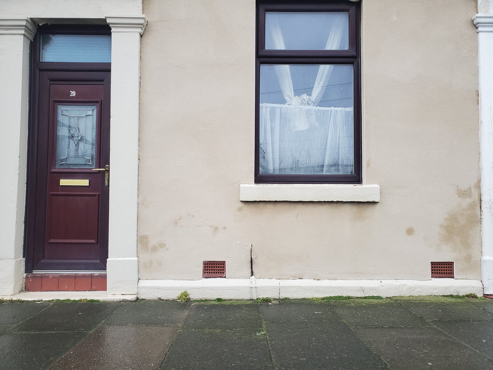 Moved into my new home recently and discovered some damp issues. There are gaps by the side of my doorstep where it looks like water is entering. I'm a complete novice when it comes to anything to do with building or DIY - I at first thought It was coming from the airbricks going into next door (Its a mid terrace) but since noticing those gaps, and also noticing how wet the stone and bricks are beneath the door, I'm now thinking it must be coming in from those gaps by the side of my doorstep. Can someone confirm weather or not it actually is this what's responsible, and if so how do I fix it?