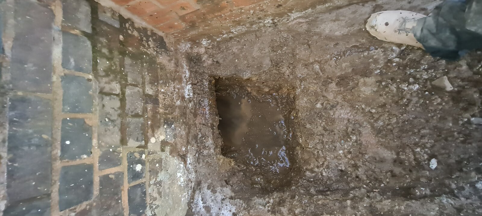 Next door is built on slightly higher ground (est 1m higher behind the wall) and has an inspection chamber for the sewer, as stated the sewer is lower than the leak suggesting the water is coming from higher. Land is thick clay, old coal mining area